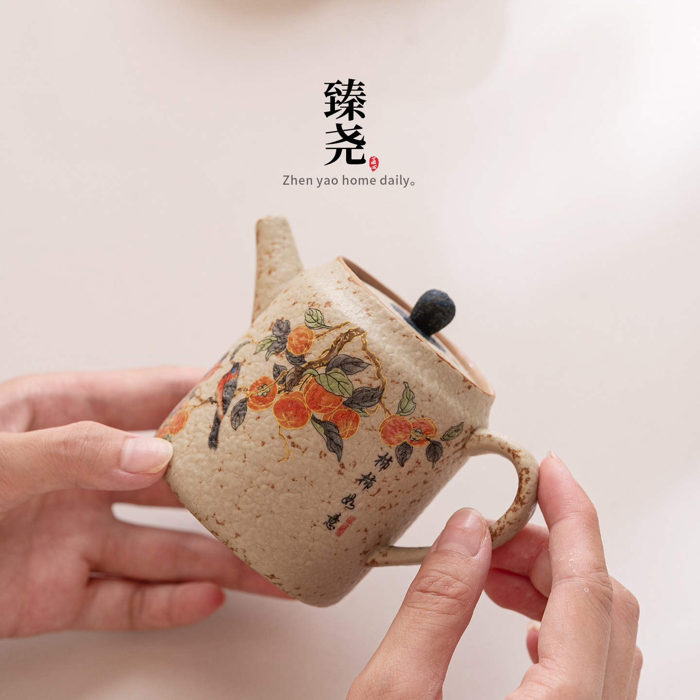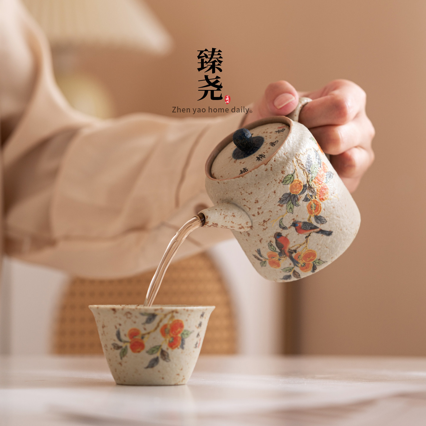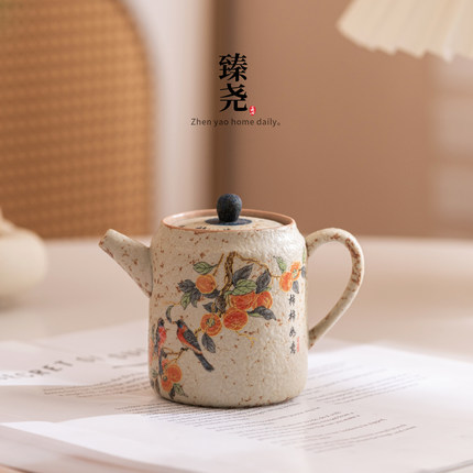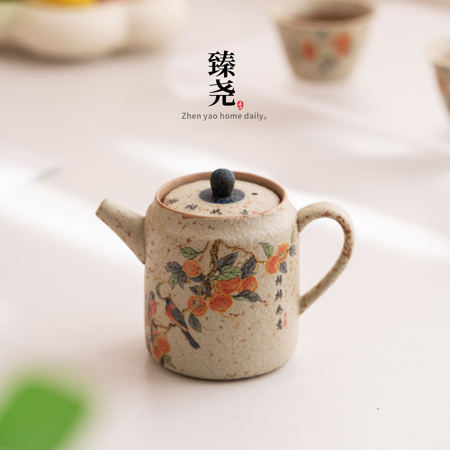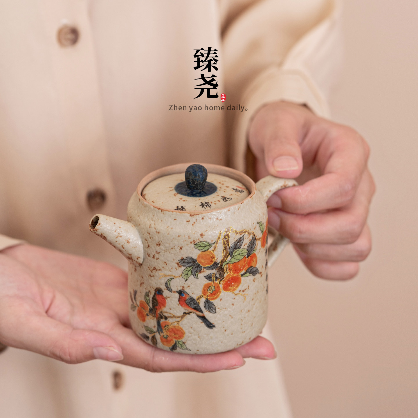 青花火石红柿柿如意茶壶单壶陶瓷家用过滤泡茶壶功夫茶具送礼礼盒