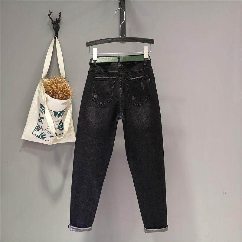 哈伦裤九分厚棉弹牛仔2024秋冬