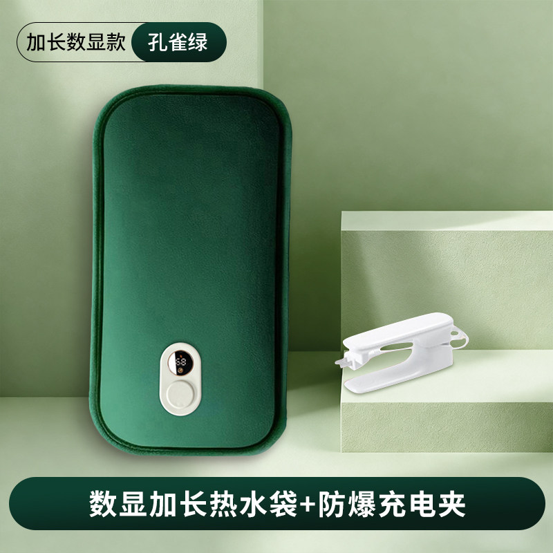 2025新款加长版显示温度热水袋充电式暖手宝女敷肚子毛绒防爆被窝