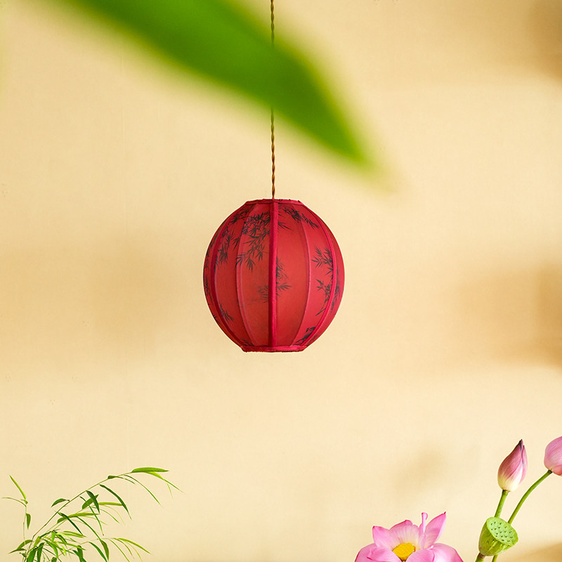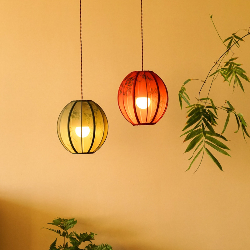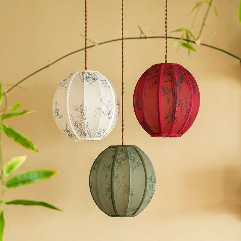 物几竹影新中式复古灯笼布艺儿童房餐厅书房卧室茶室灯具球形吊灯