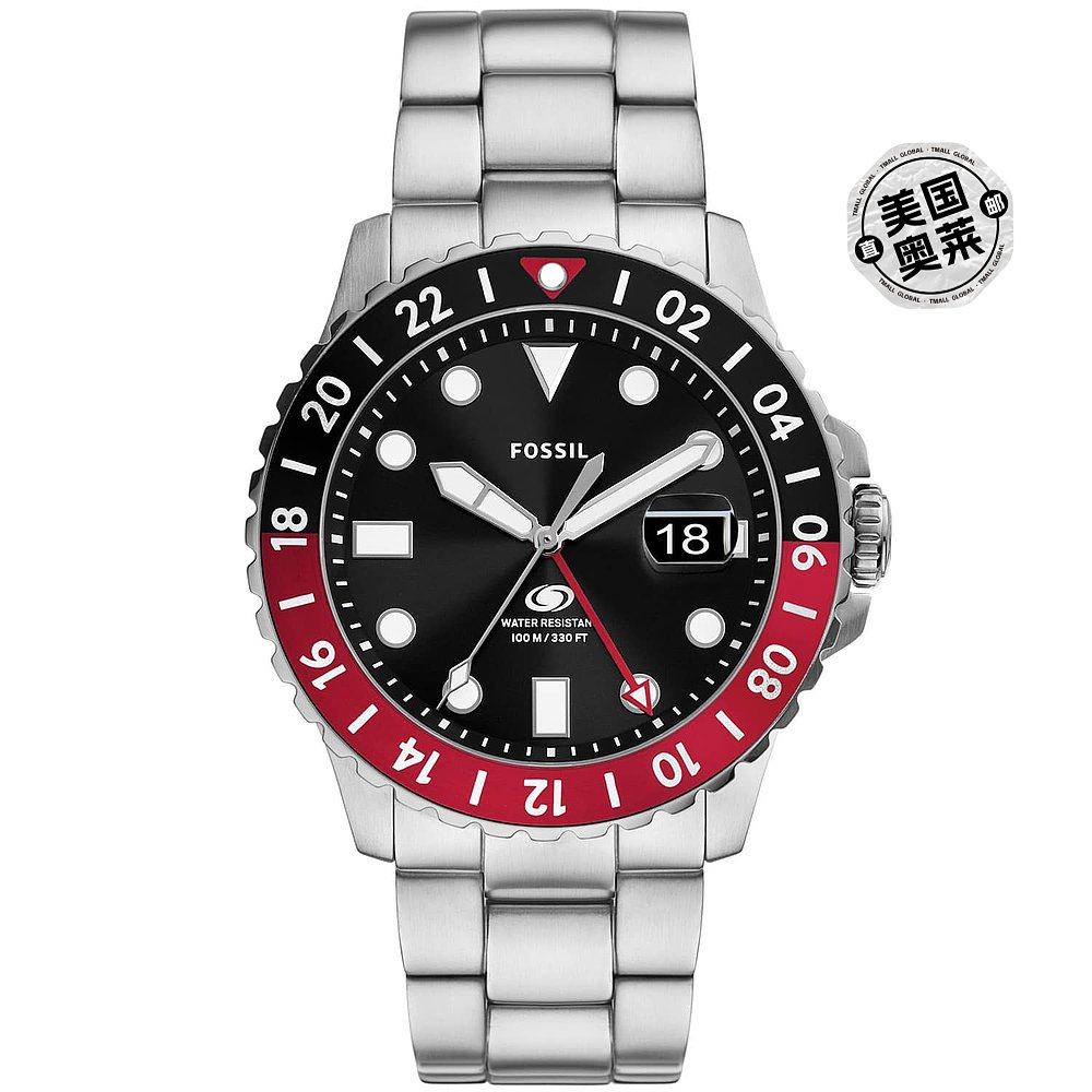 自营Fossil男式蓝色GMT黑色表盘手表-黑色 美国奥莱直发化石