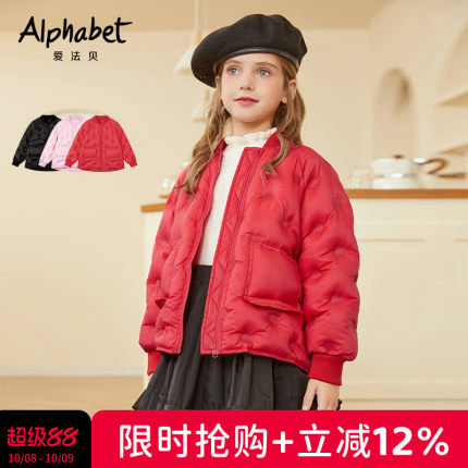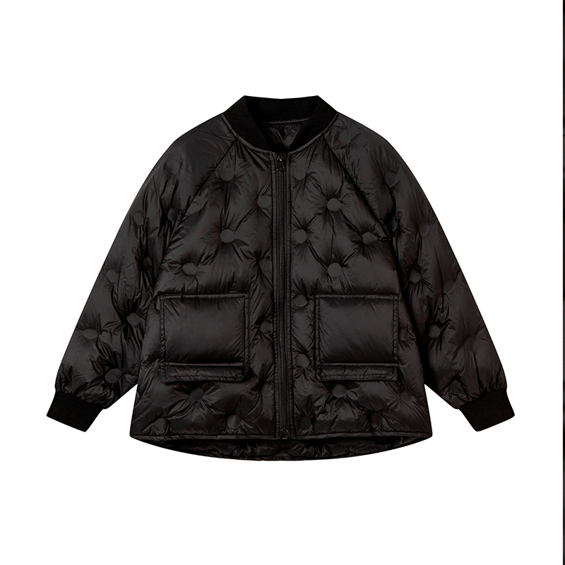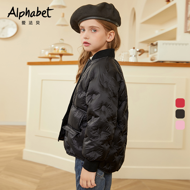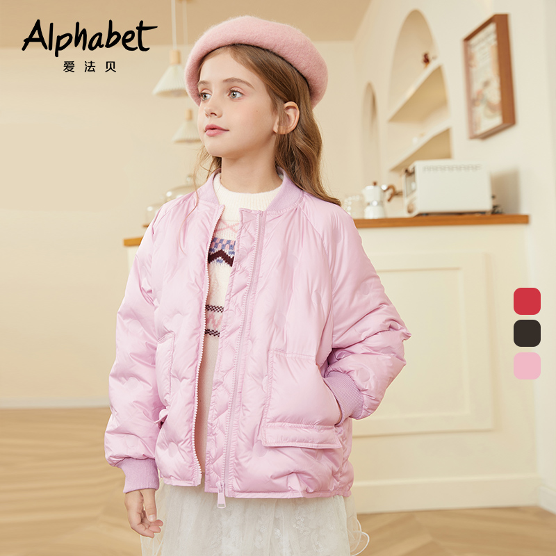 【羽绒升级】2025冬季女童90白鸭绒羽绒服短款夹克轻薄棒球领羽绒