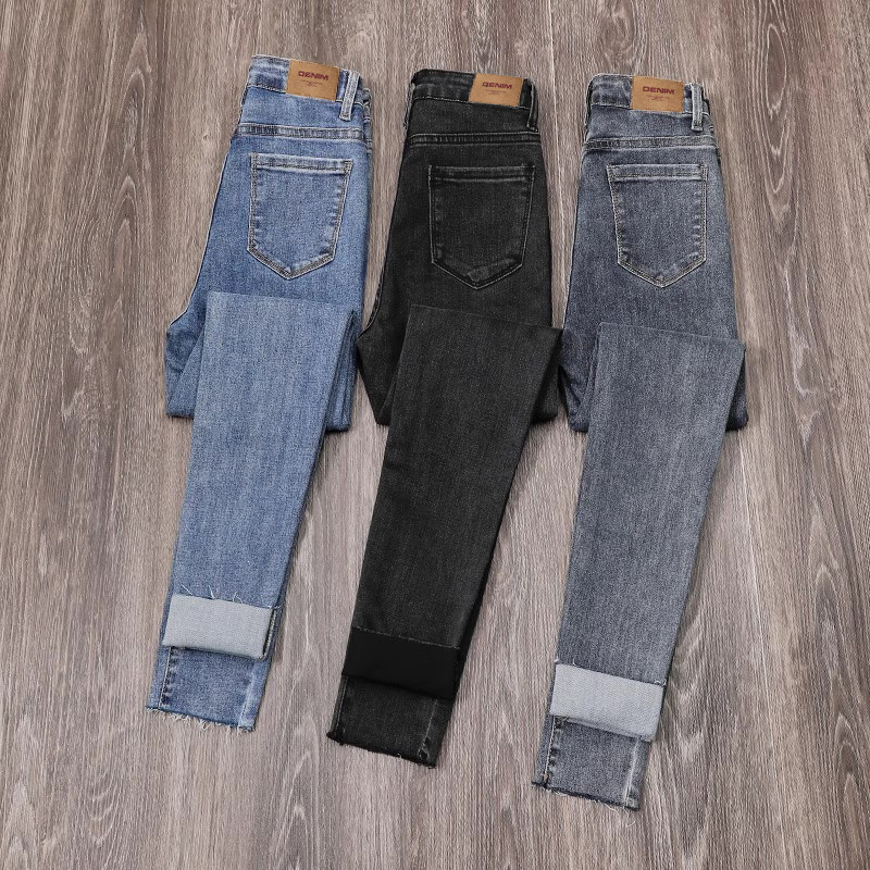 高腰加绒牛仔裤女2025春秋高腰紧身修身显瘦弹力九分铅笔小脚裤子