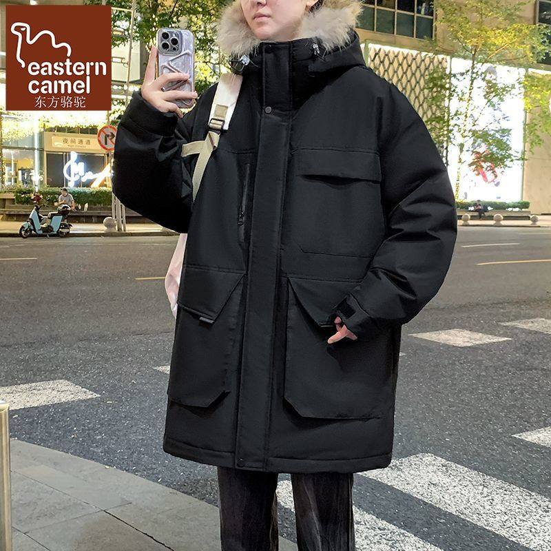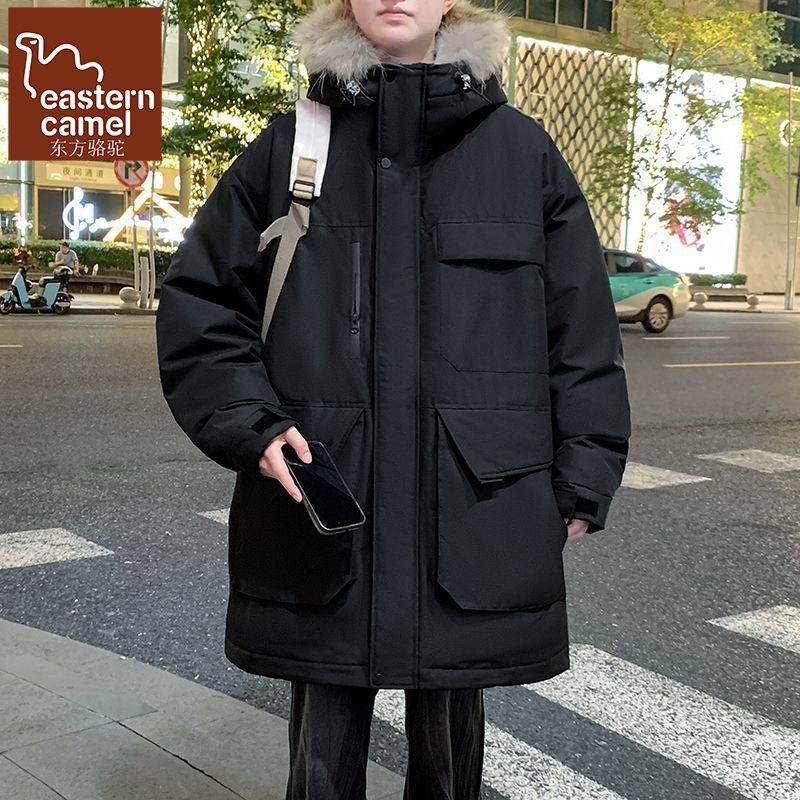 东方骆驼官方冬季宽松保暖防风防水连帽羽绒服男户外登山鸭绒外套