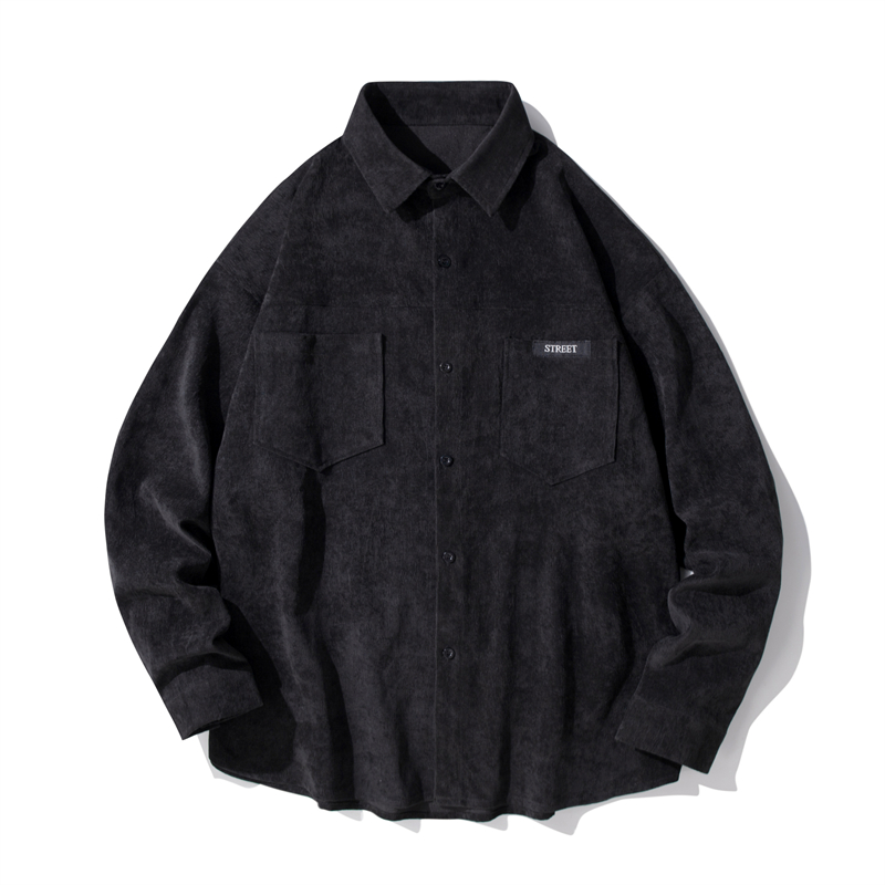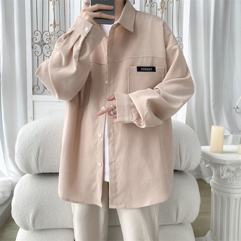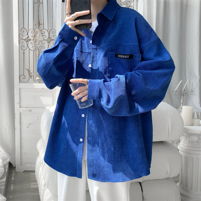 胖胖哥灯芯绒衬衫男秋季韩版潮流大码翻领衬衣港风宽松胖子外套