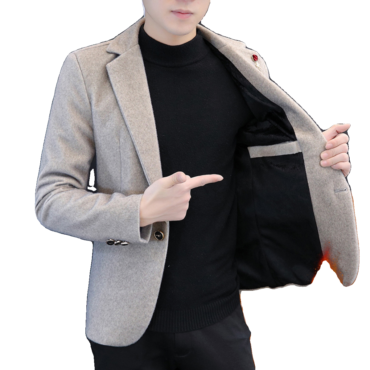 秋冬季西服男士水貂绒外套纯色单西韩版修身加绒加厚毛呢子小西装
