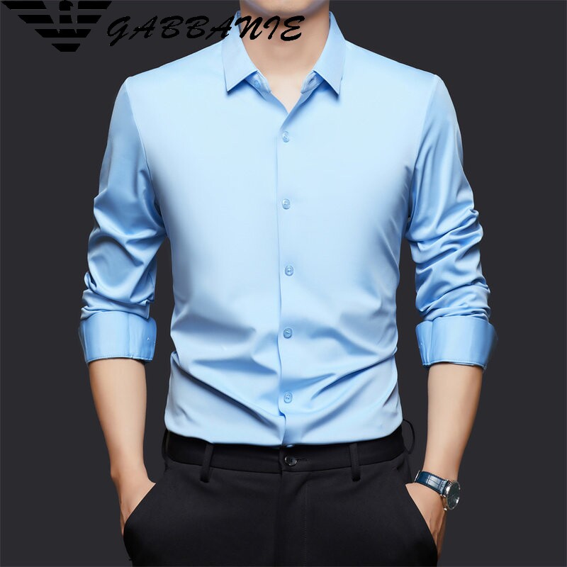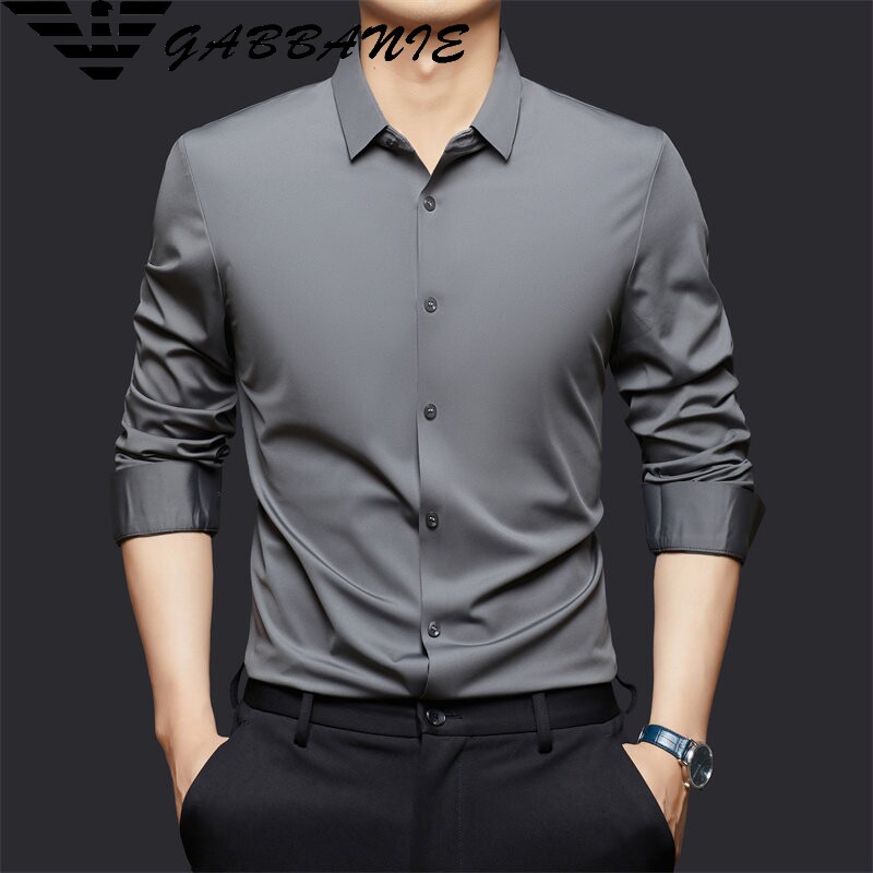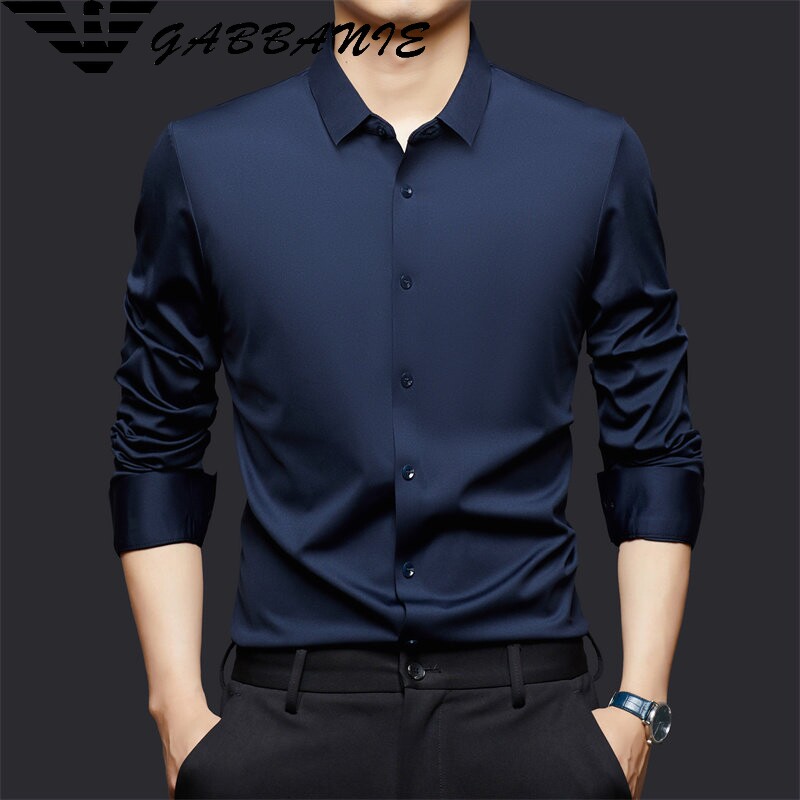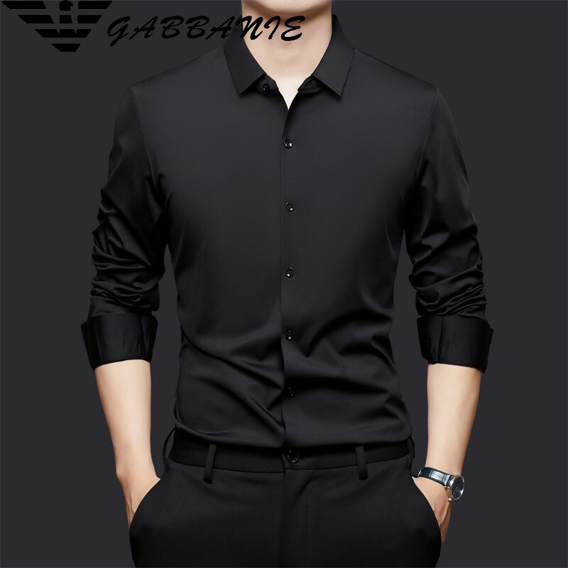 春夏季男士长袖衬衫抗皱免烫职业正装潮商务高端冰丝衬衣黑色寸衫
