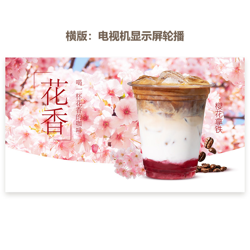 樱花拿铁 樱花咖啡 花香拿铁 台卡海报电视展示素材PSD格式