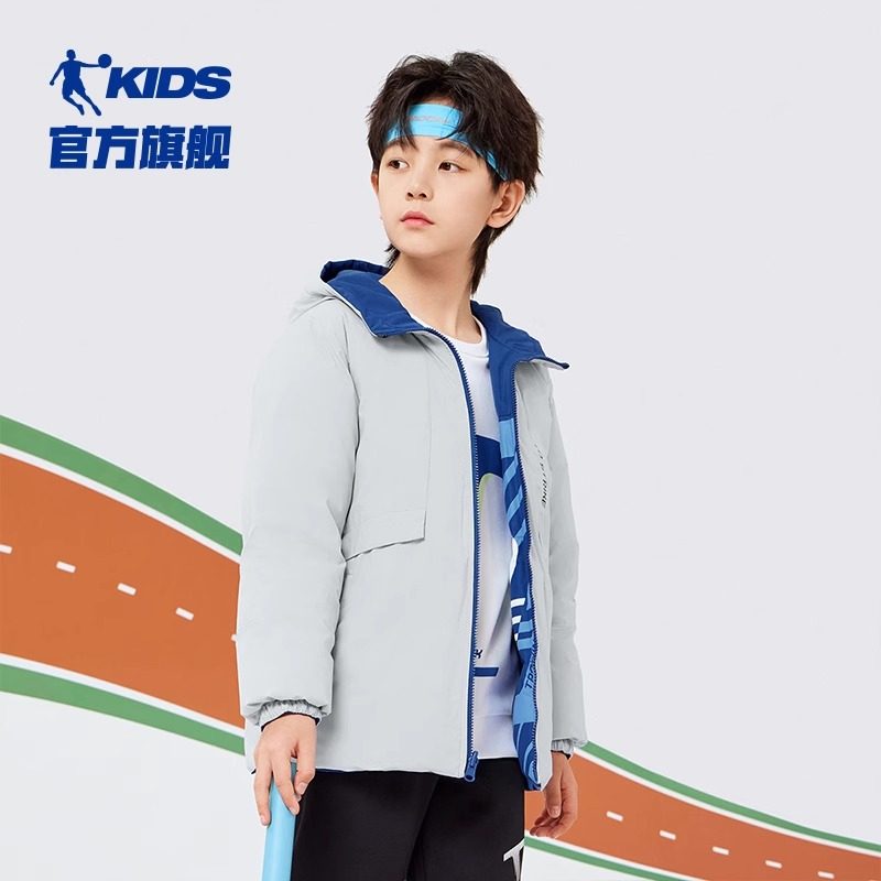 乔丹男童羽绒服中大童运动外套2024冬季儿童双面穿羽绒衣T8442605