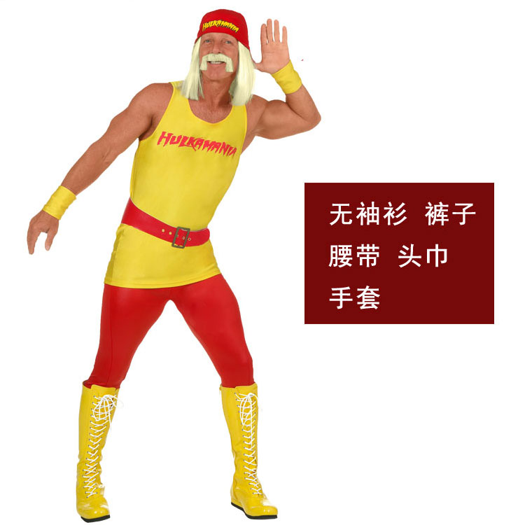 Cosplay万圣节舞台表演成人美国职业摔跤手胡克霍根角色扮演服装