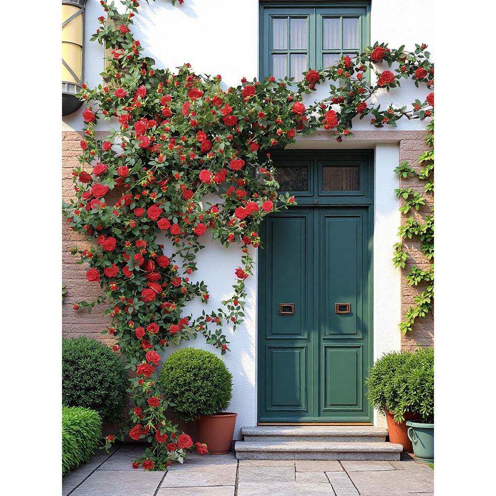 ?玫瑰花网红打花瀑布Fh(x}$p$门墙壁卡假花管道装饰花藤条墙遮挡