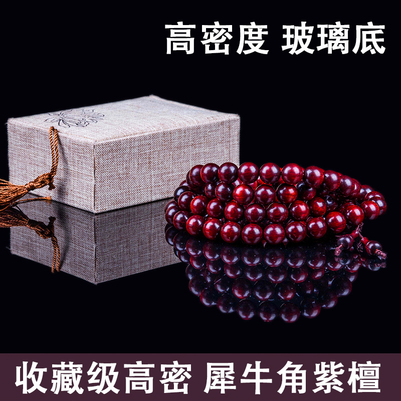 印度犀牛角手串小叶紫檀佛珠