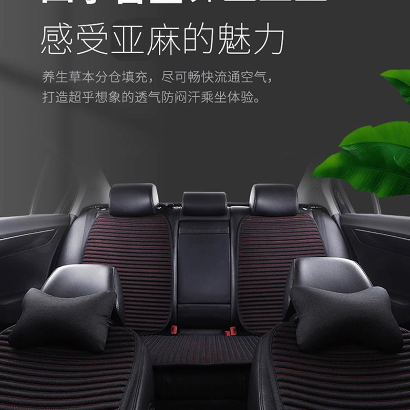 亚麻汽车坐垫单片四季通用荞麦壳夏季冰丝车内座垫套无靠背三件套
