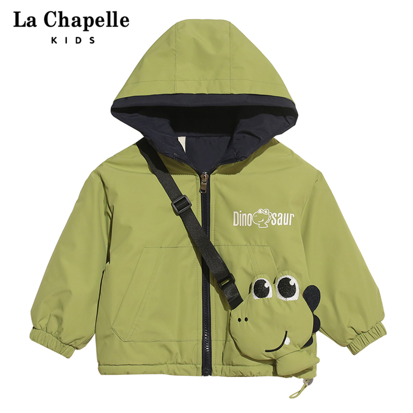 拉夏贝尔男童秋冬装外套儿童加绒加厚冲锋衣宝宝冬季新款洋气棉服