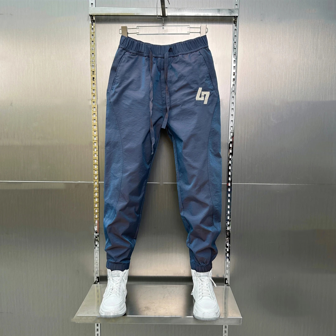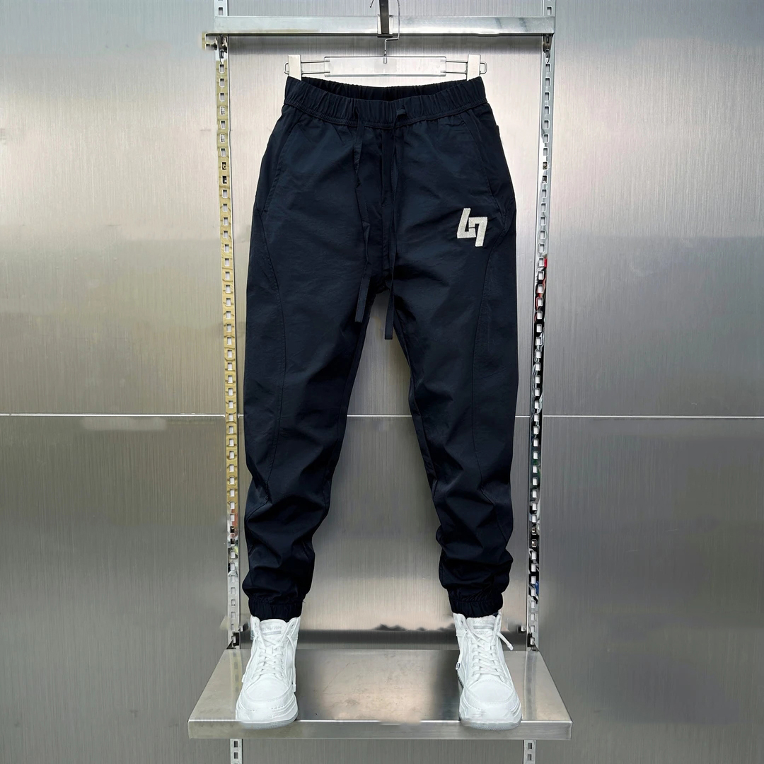夏季薄款速干哈伦裤男士夏季2025刺绣青年潮流修身束脚休闲九分裤