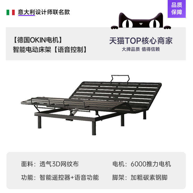 黑科技语音遥控多功能智能电动升降排骨架床主卧德国okin电机床架
