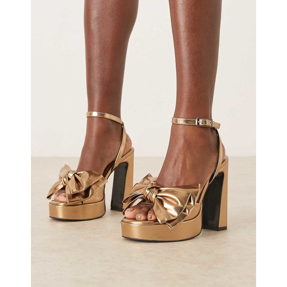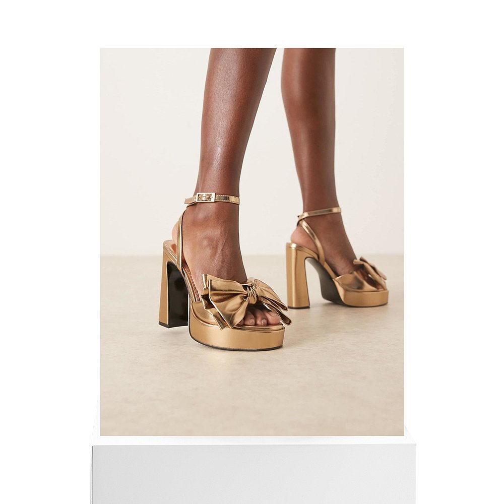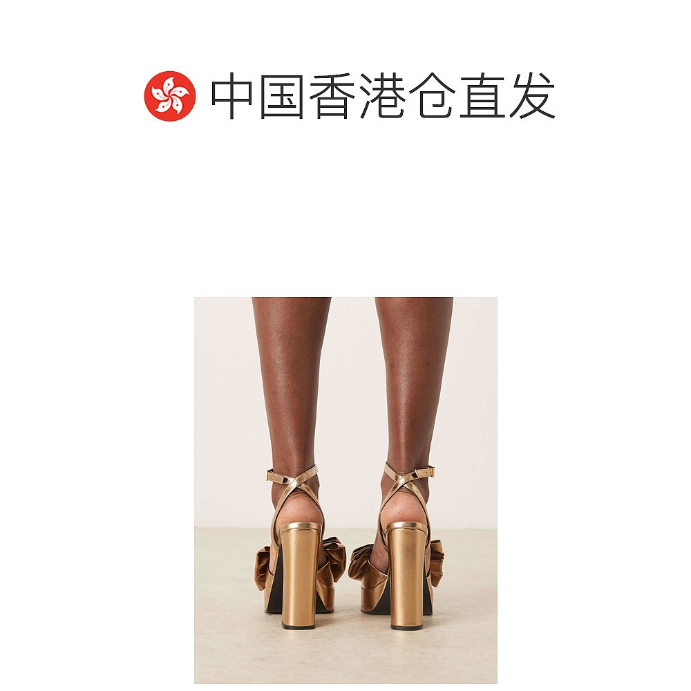1h可退 香港直邮ASOS 女士 Nala 设计大蝴蝶结防水台鞋跟金色凉鞋