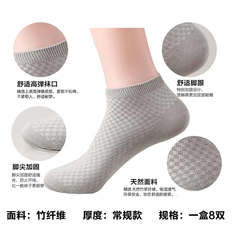 竹纤维袜子春夏季黑色男士短袜 商务防臭袜男全棉中筒白色男袜