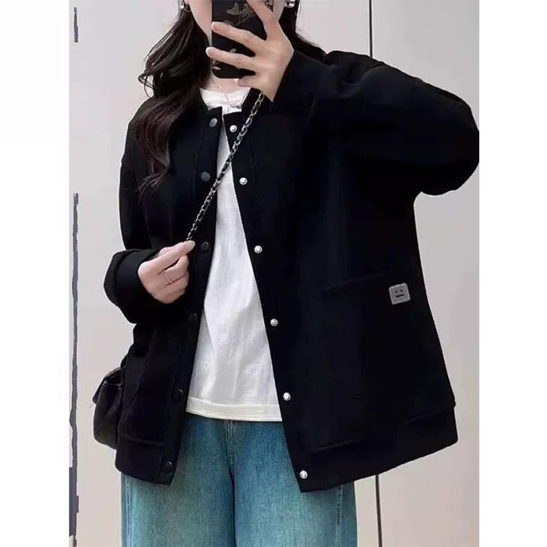 大码300斤韩版长袖开衫外套女春秋宽松显瘦百搭休闲棒球服胖mm260
