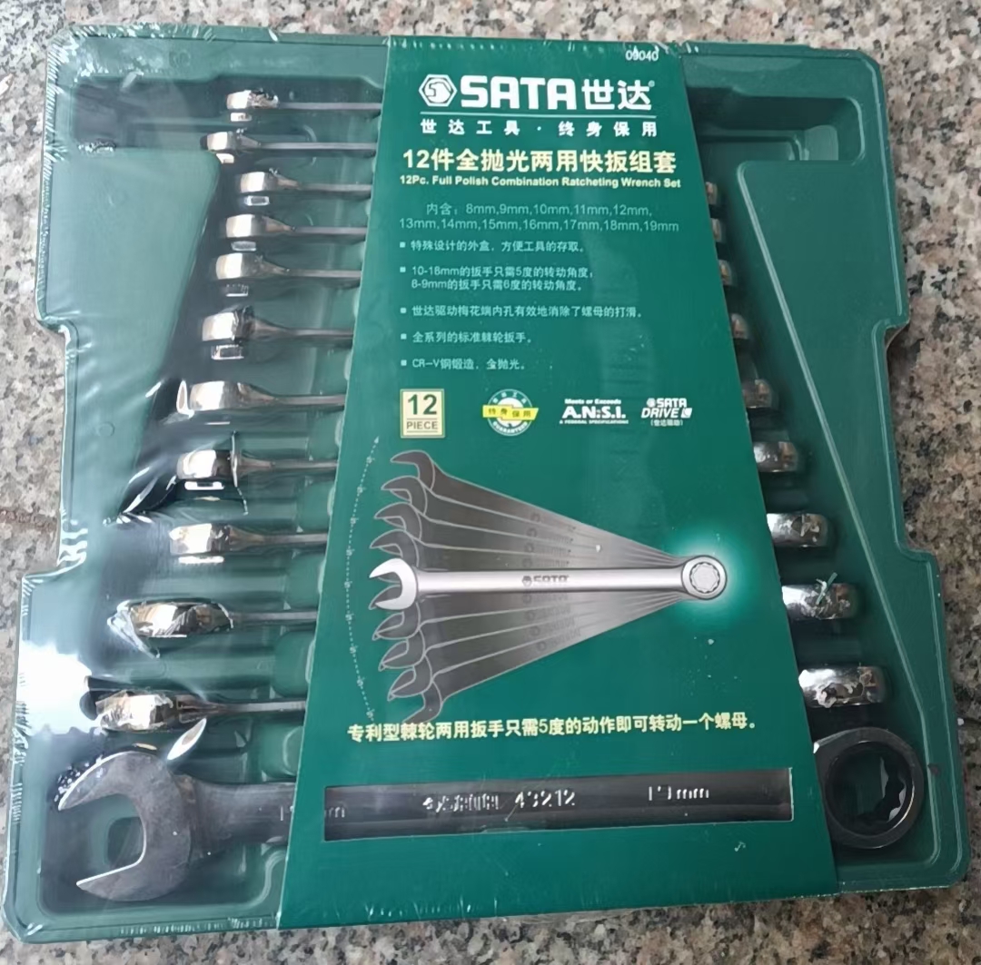 世达12件梅开两用扳手套装快速棘轮快扳汽机修工具组套大全09040