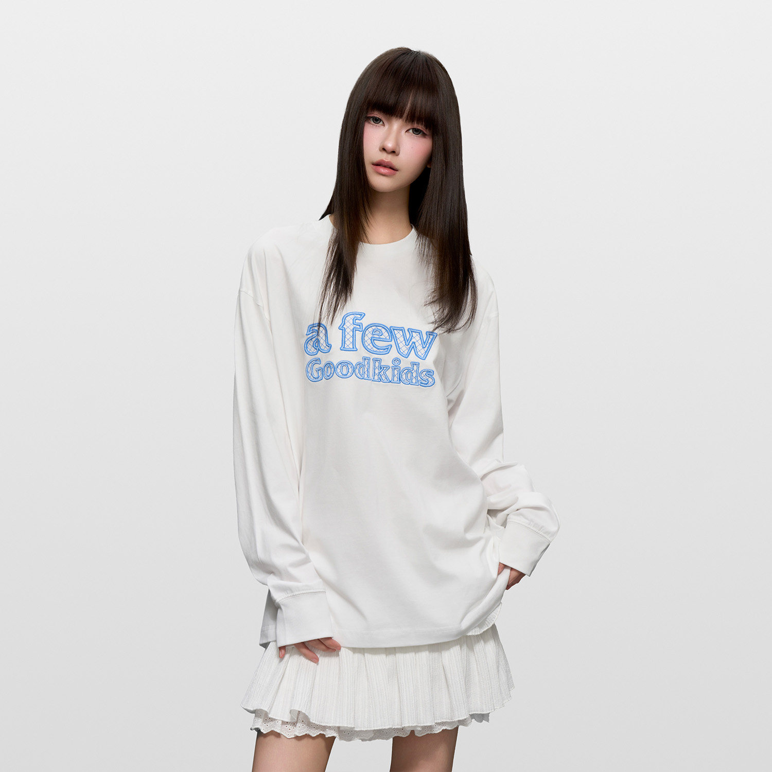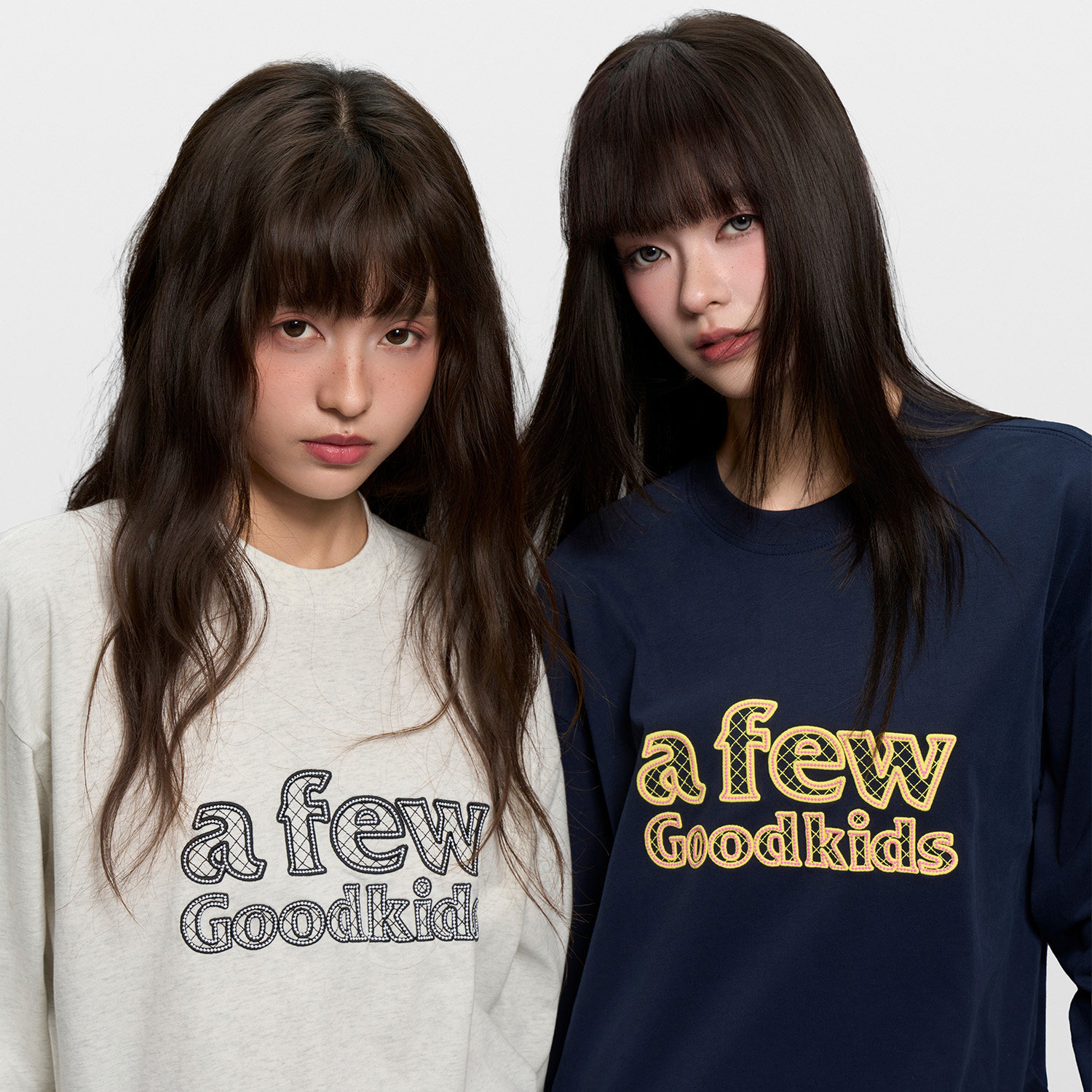 AFGK25FW复合工艺镂空线绣长袖T恤春秋情侣宽松百搭休闲男女上衣