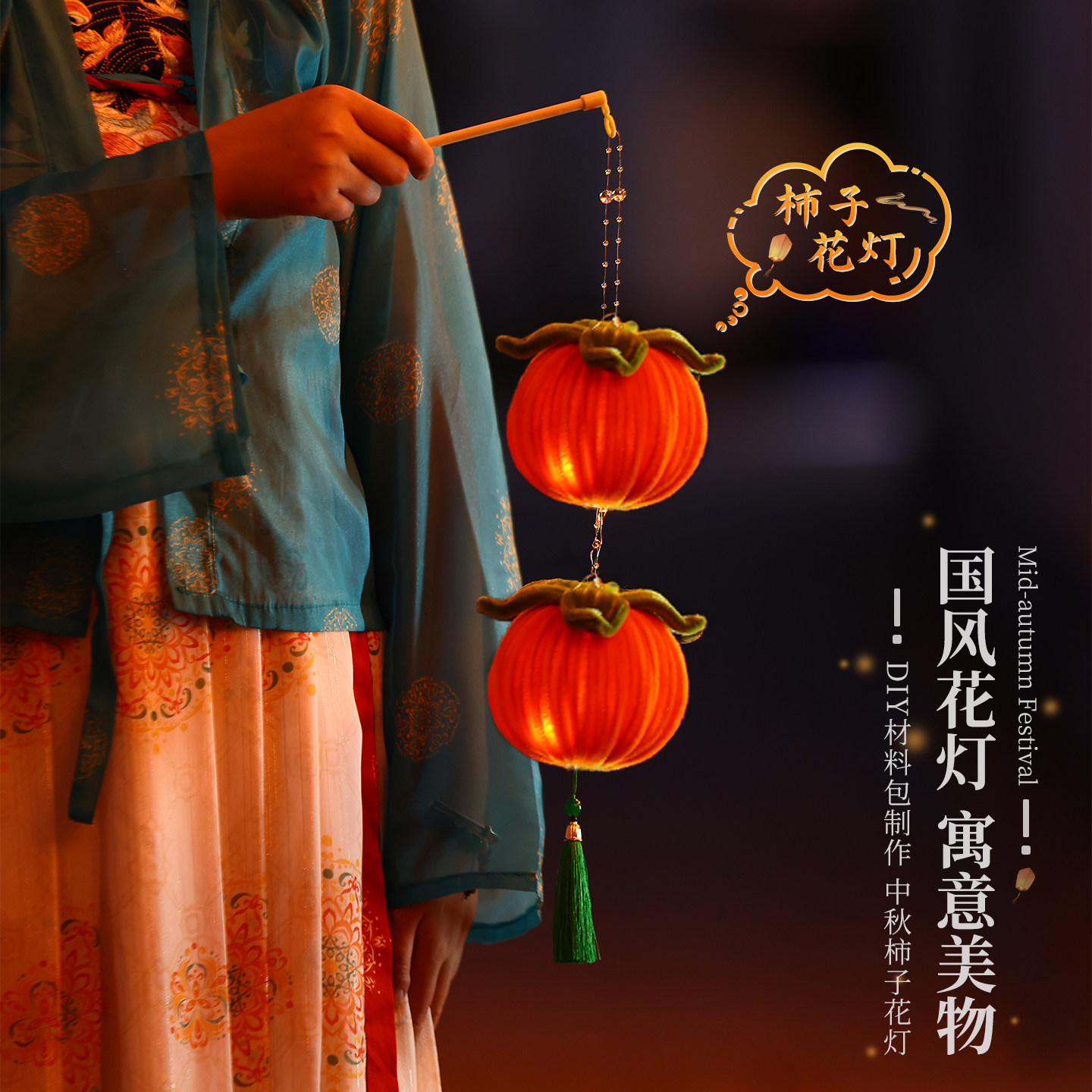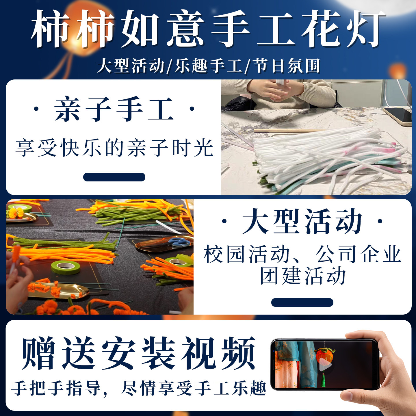 马年元宵节灯笼新款儿童手工diy材料扭棒手提中式古风柿子花灯