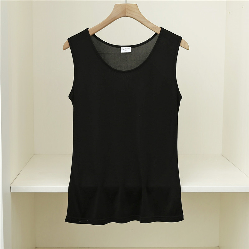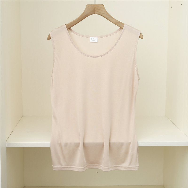 真丝吊带背心女纯色打底针织衫春夏季内搭桑蚕丝白色无袖外穿上衣