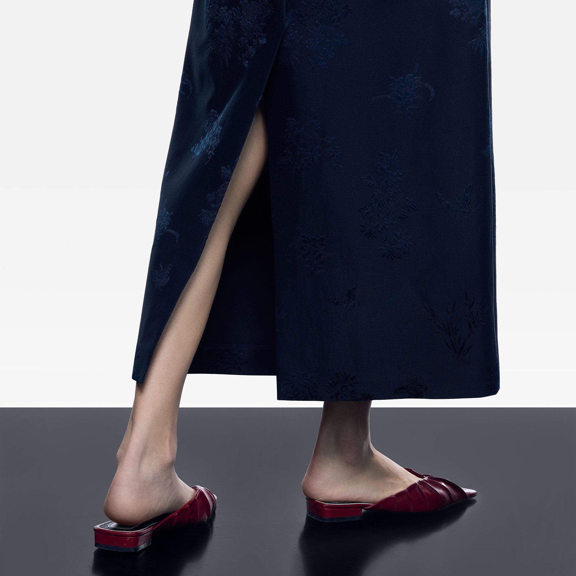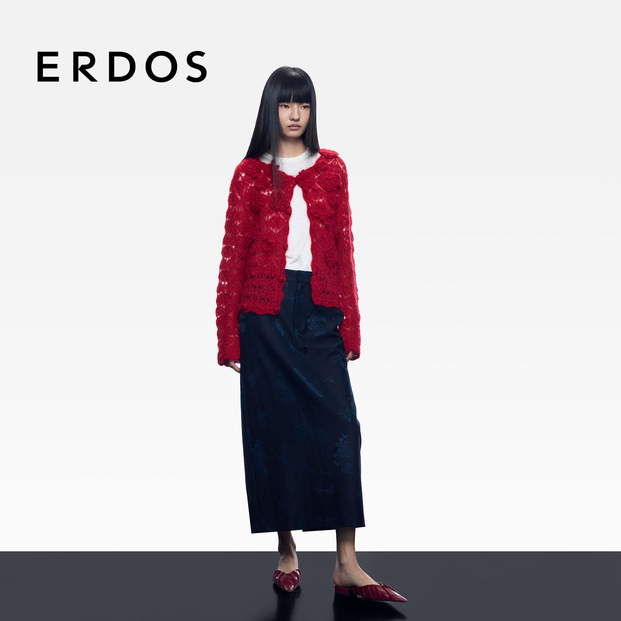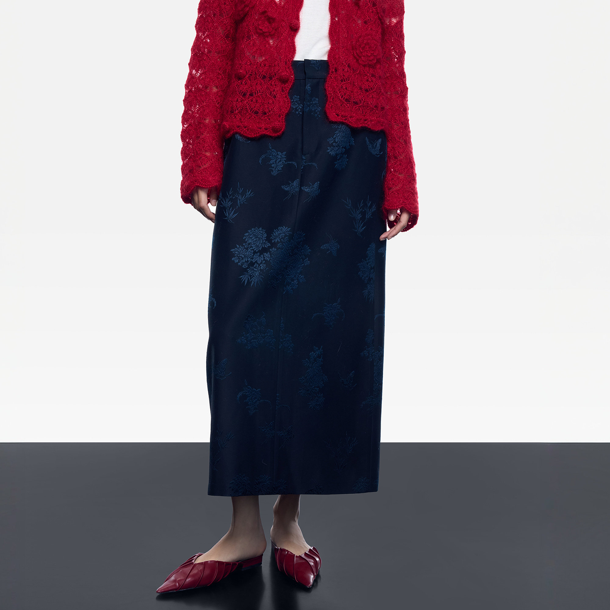 ERDOS 直筒半身裙25年秋冬新品新中式植物提花羊毛真丝混纺半身裙