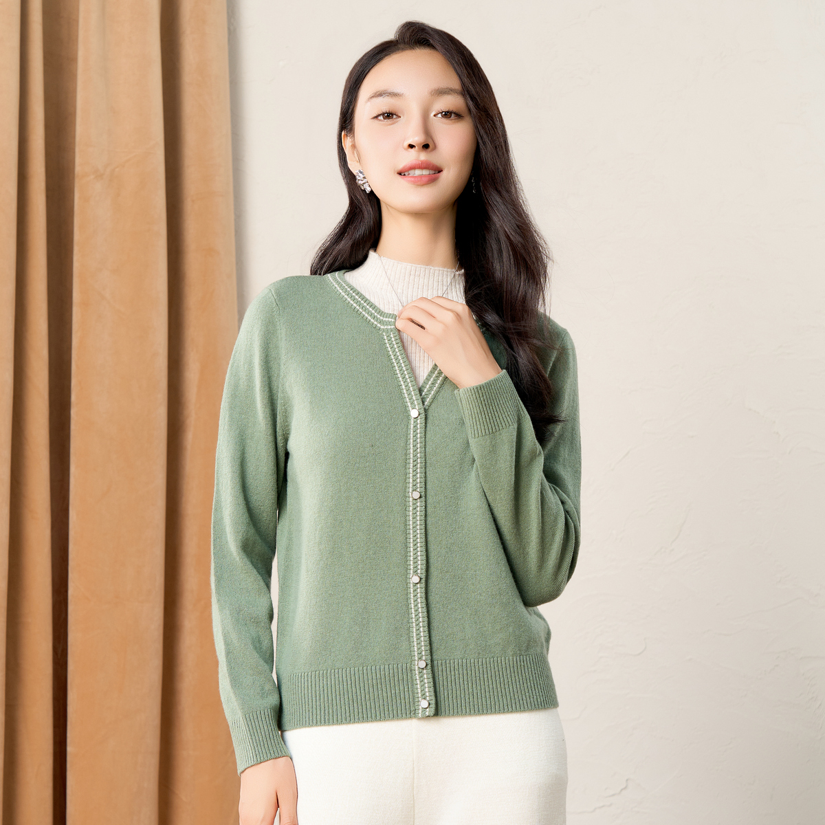 春竹2025秋冬新款100%纯绵羊毛半高领毛衣女假两件针织羊毛衫套衫