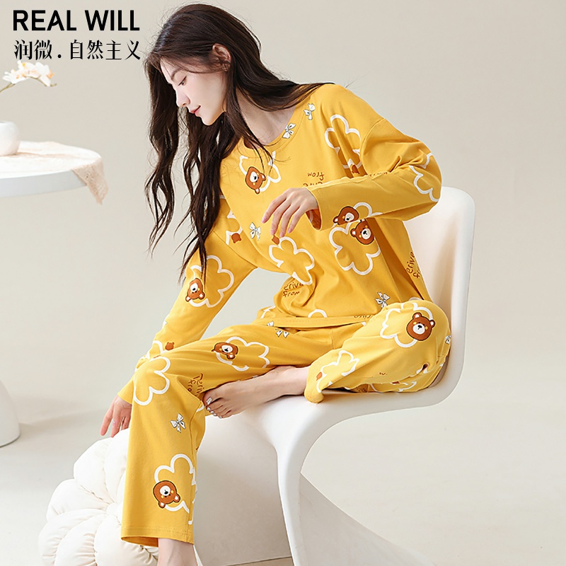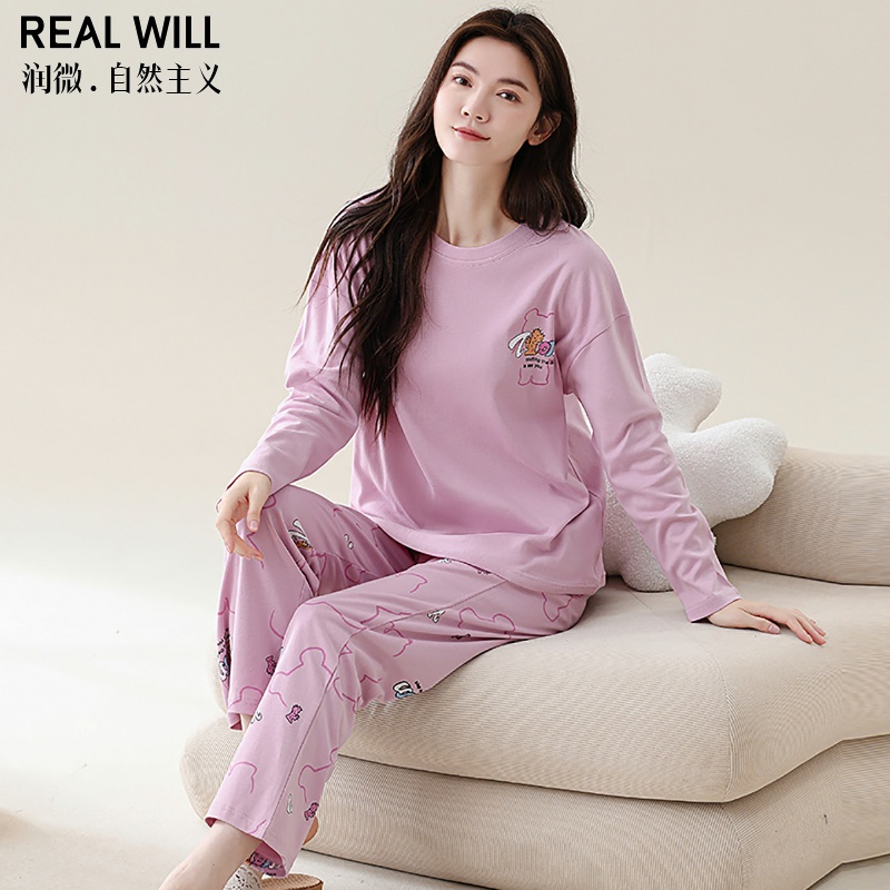 润微春秋季女士纯棉睡衣套装长袖长裤青年秋天新款全棉家居服套装