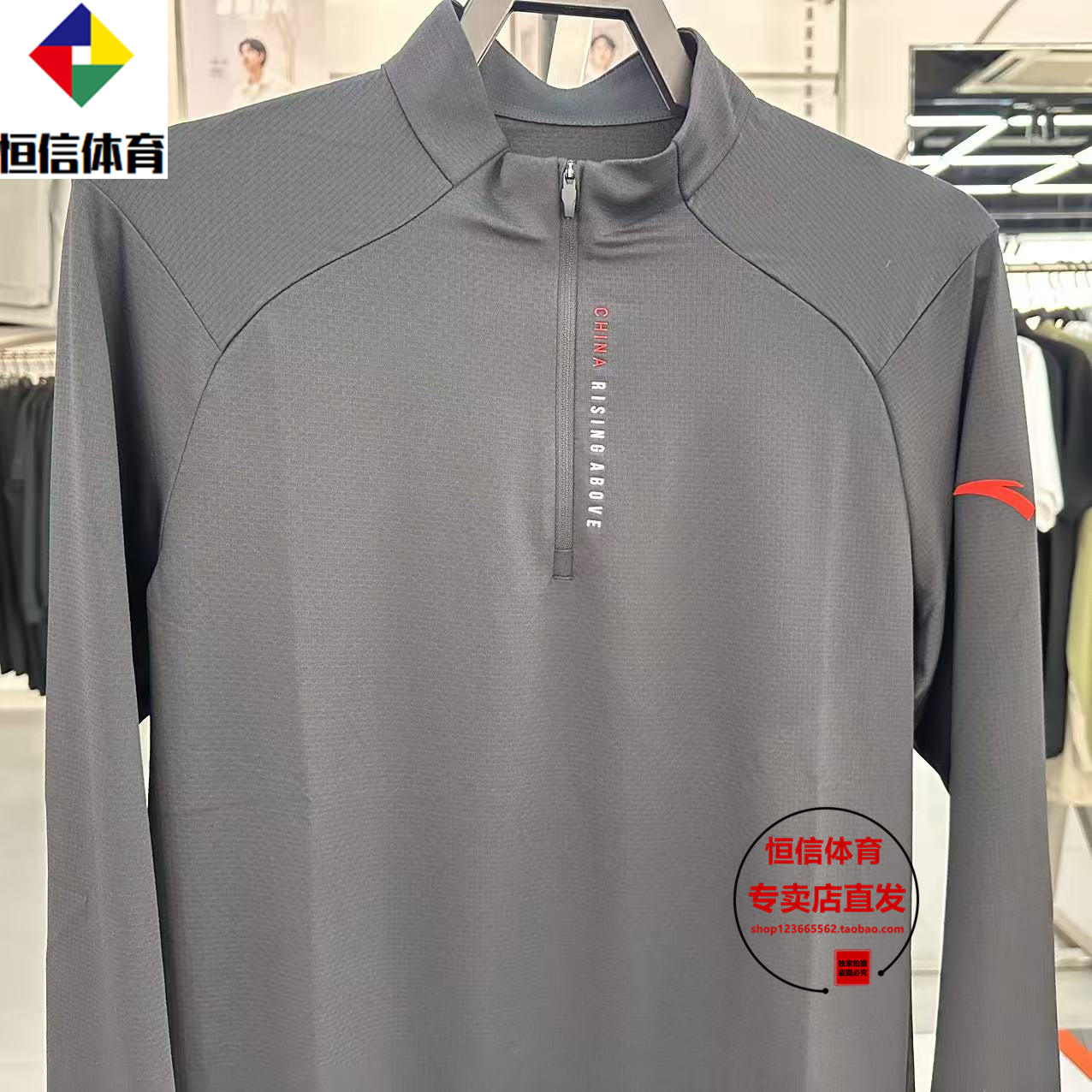安踏综训吸湿速干男子立领长袖运动针织衫T恤152537409