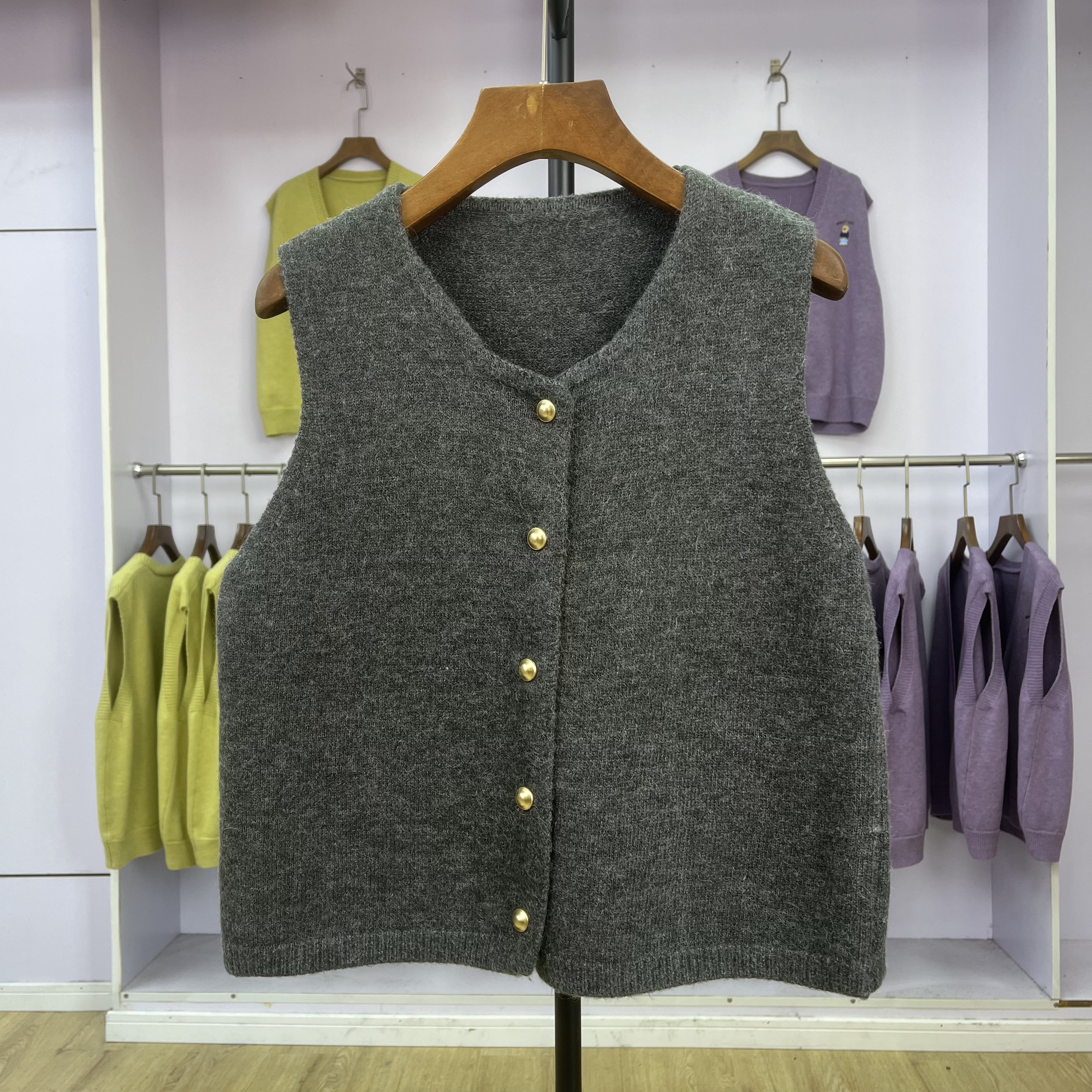 442 无袖女款打底纯色韩版洋气时尚针织开衫马甲坎肩外搭背心上衣
