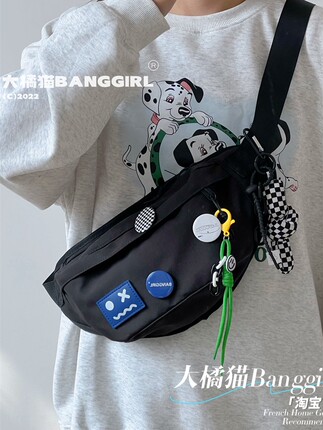 日系ins原宿运动大容量胸包男 小众复古百搭个性斜挎包女学生腰包