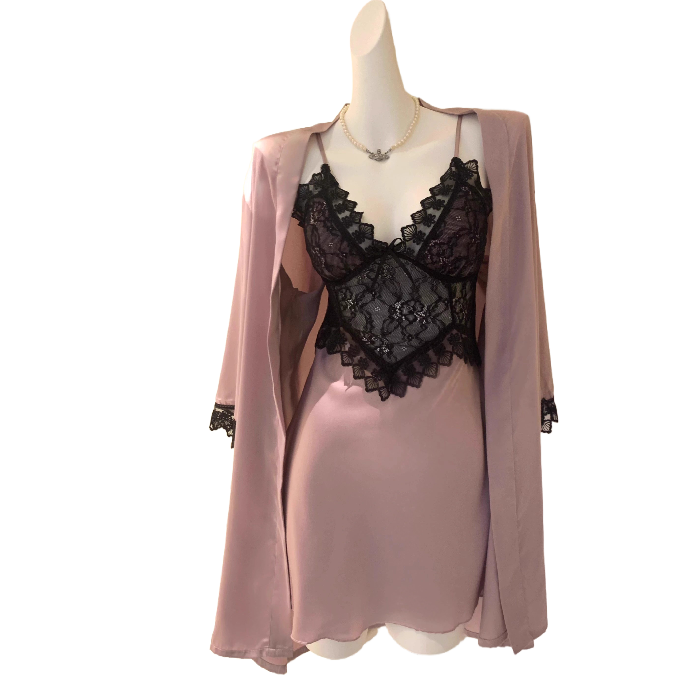 春秋款性感真丝睡裙女带胸垫高级感睡衣新款家居服套装晨袍两件套