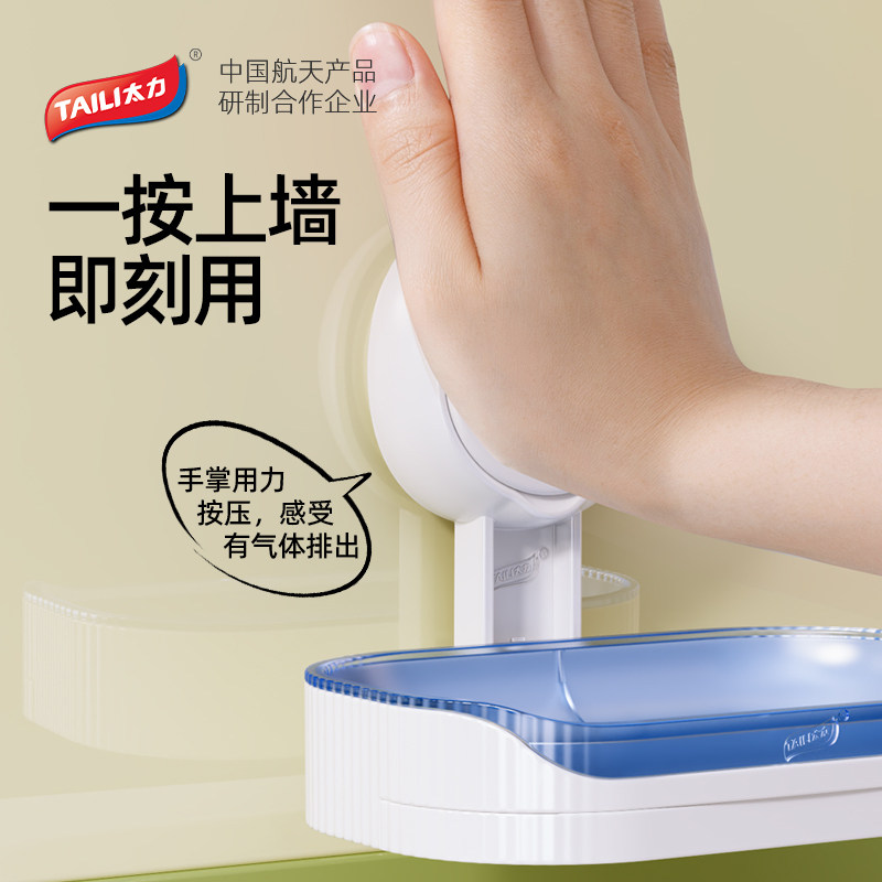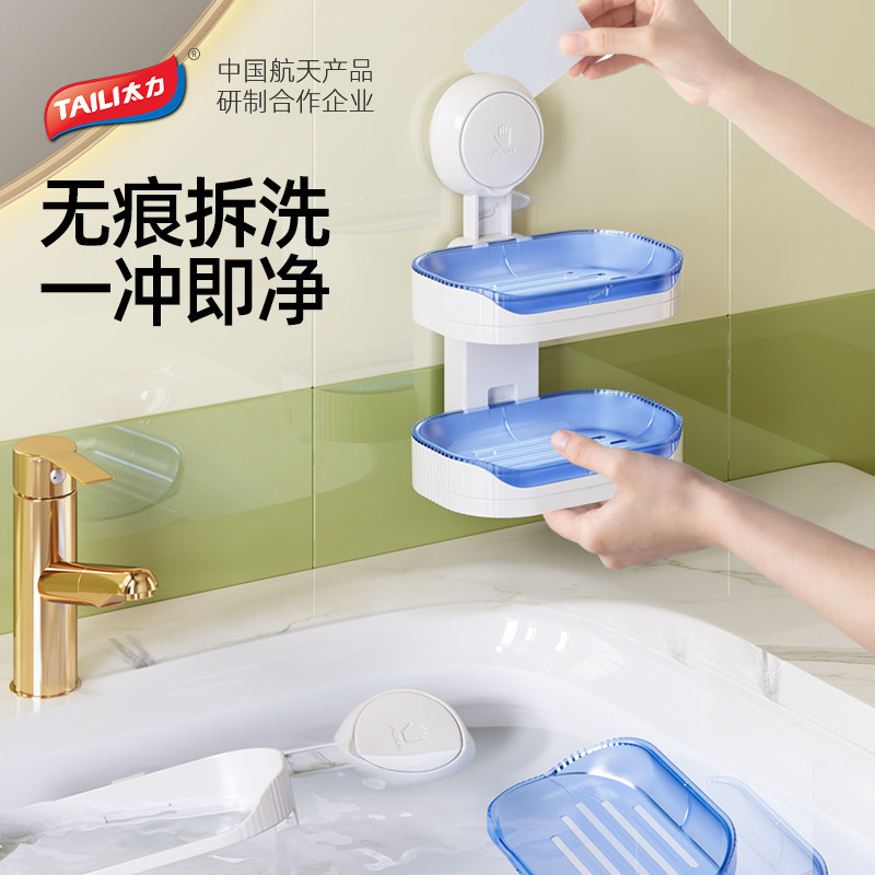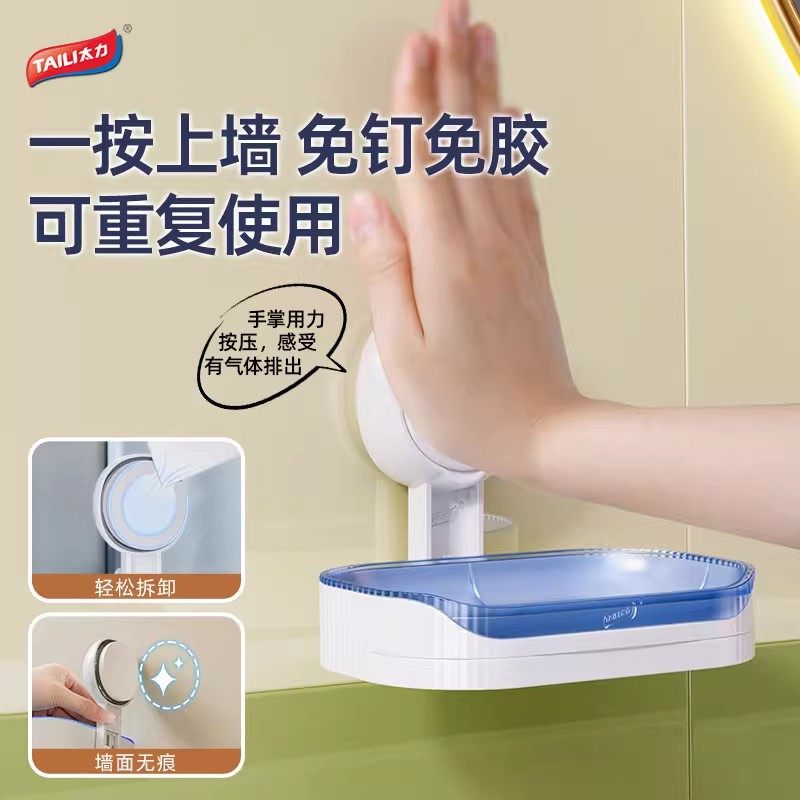 太力吸盘肥皂盒壁挂式免打孔抗菌沥水卫生间收纳香皂盒置物架新款