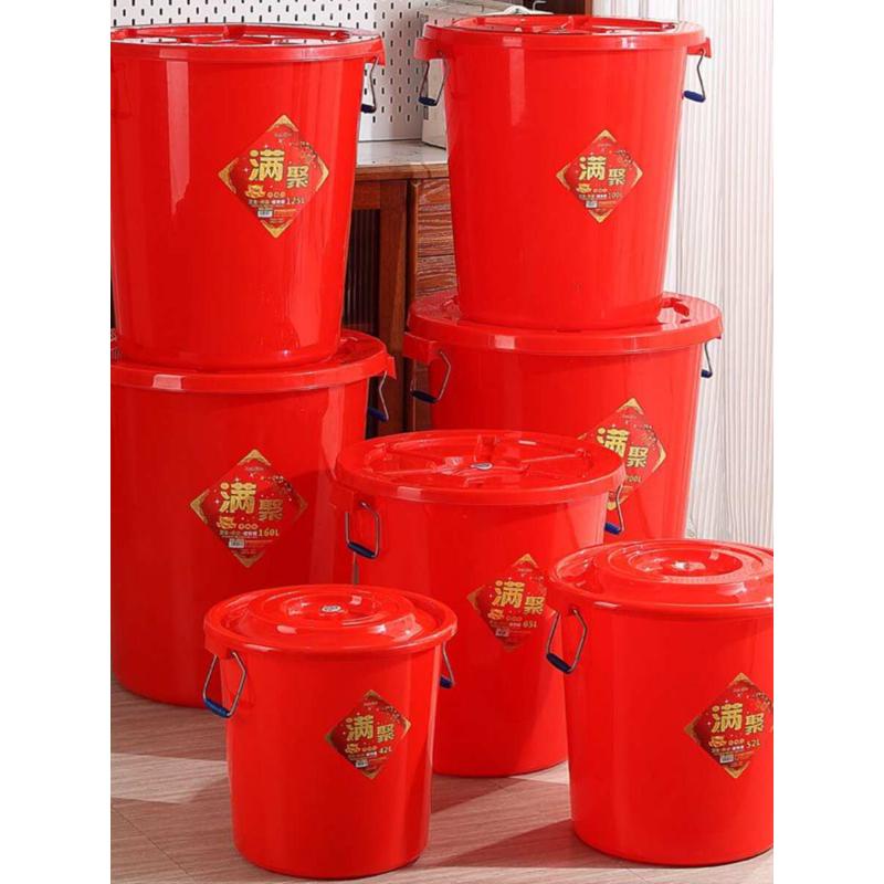 红桶加厚特大家用储水桶结婚喜事乔迁储水塑料大红色带盖喜庆外贸