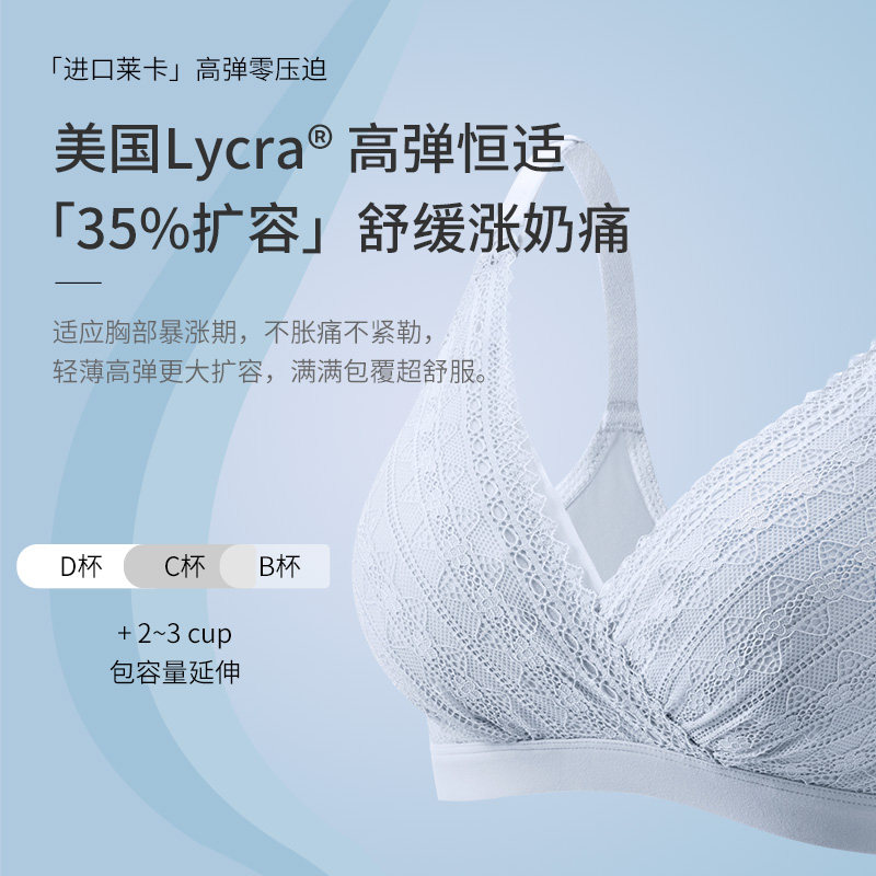 哺乳文胸纯棉孕妇内衣夏季薄款怀孕期聚拢防下垂喂奶专用蕾丝胸罩