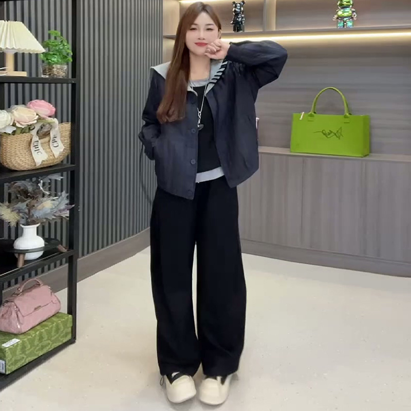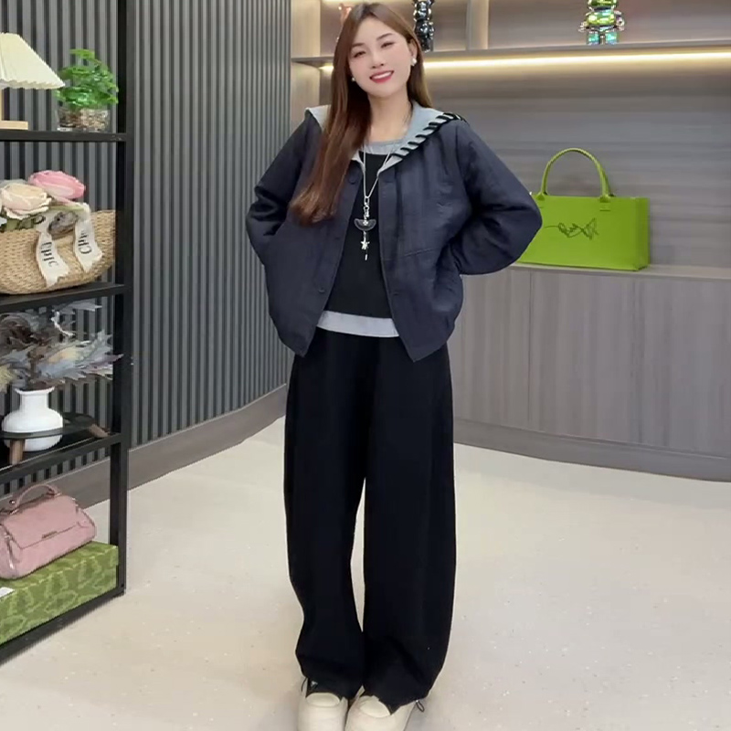 韩系冬季大码女装拼接轻薄款外套