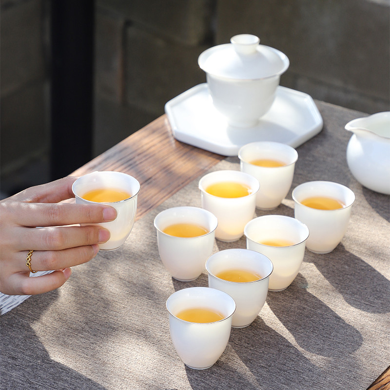羊脂玉白瓷茶杯10只品茗杯喝茶功夫茶杯高档德化陶瓷茶具logo定制