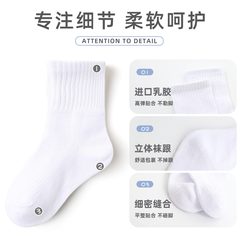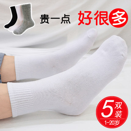 儿童中筒袜男童袜子纯棉夏薄款白色女童防臭吸汗秋冬a类A黑色夏季