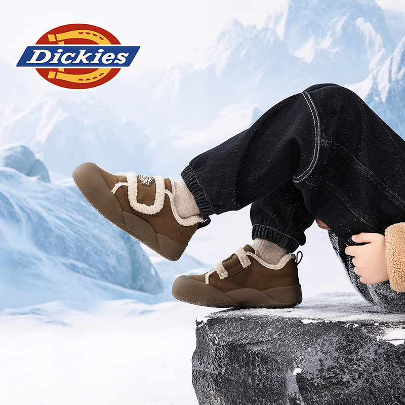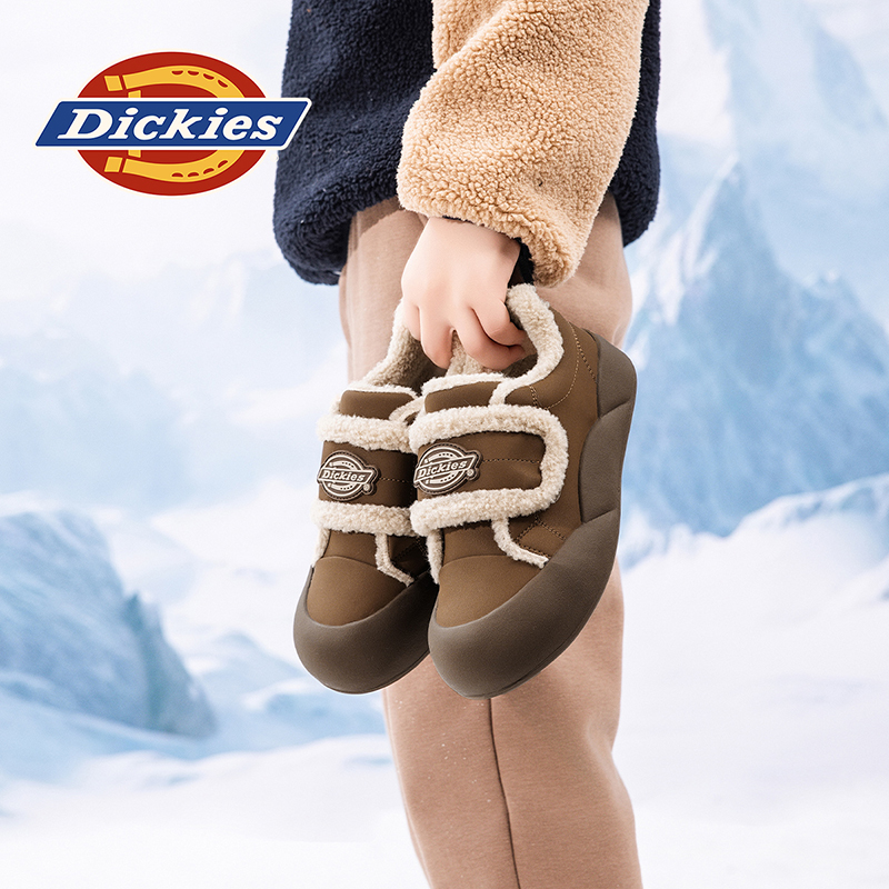 Dickies儿童棉鞋2025冬季新款时尚女童毛毛鞋仿羊羔毛低帮雪地靴