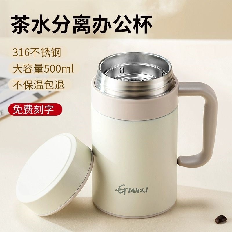 316保温杯茶水分离手柄茶杯办公室大容量水杯冬季泡茶杯免费刻字