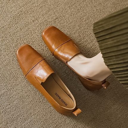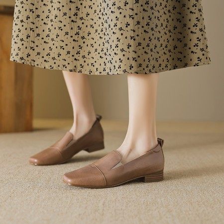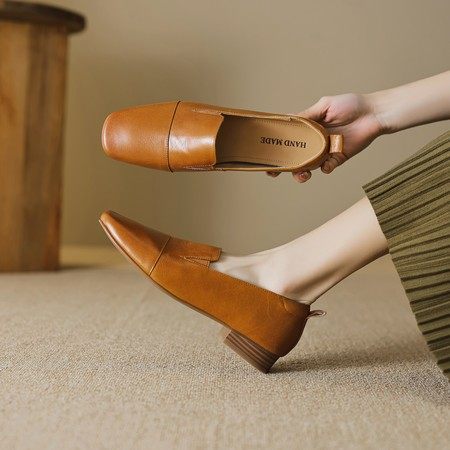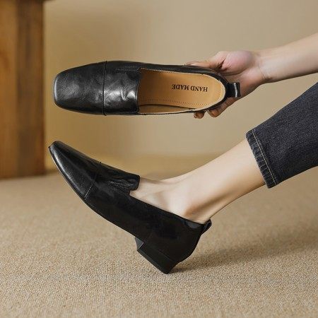巨好穿时尚英伦风法式深口单鞋女春秋方头低跟粗跟中跟真皮乐福鞋