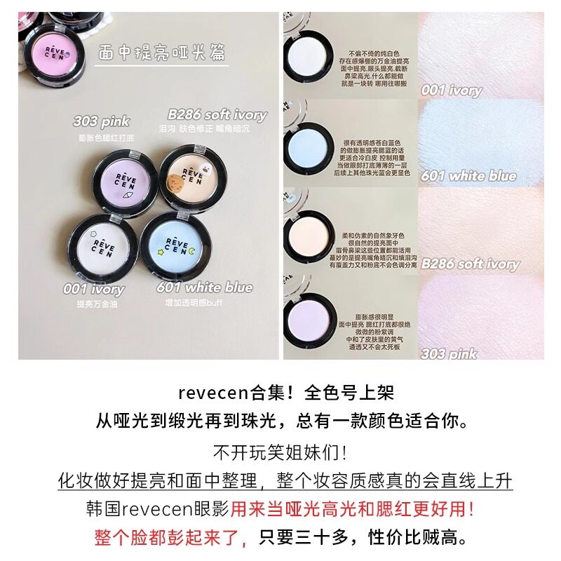 revecen高光单色眼影腮红提亮