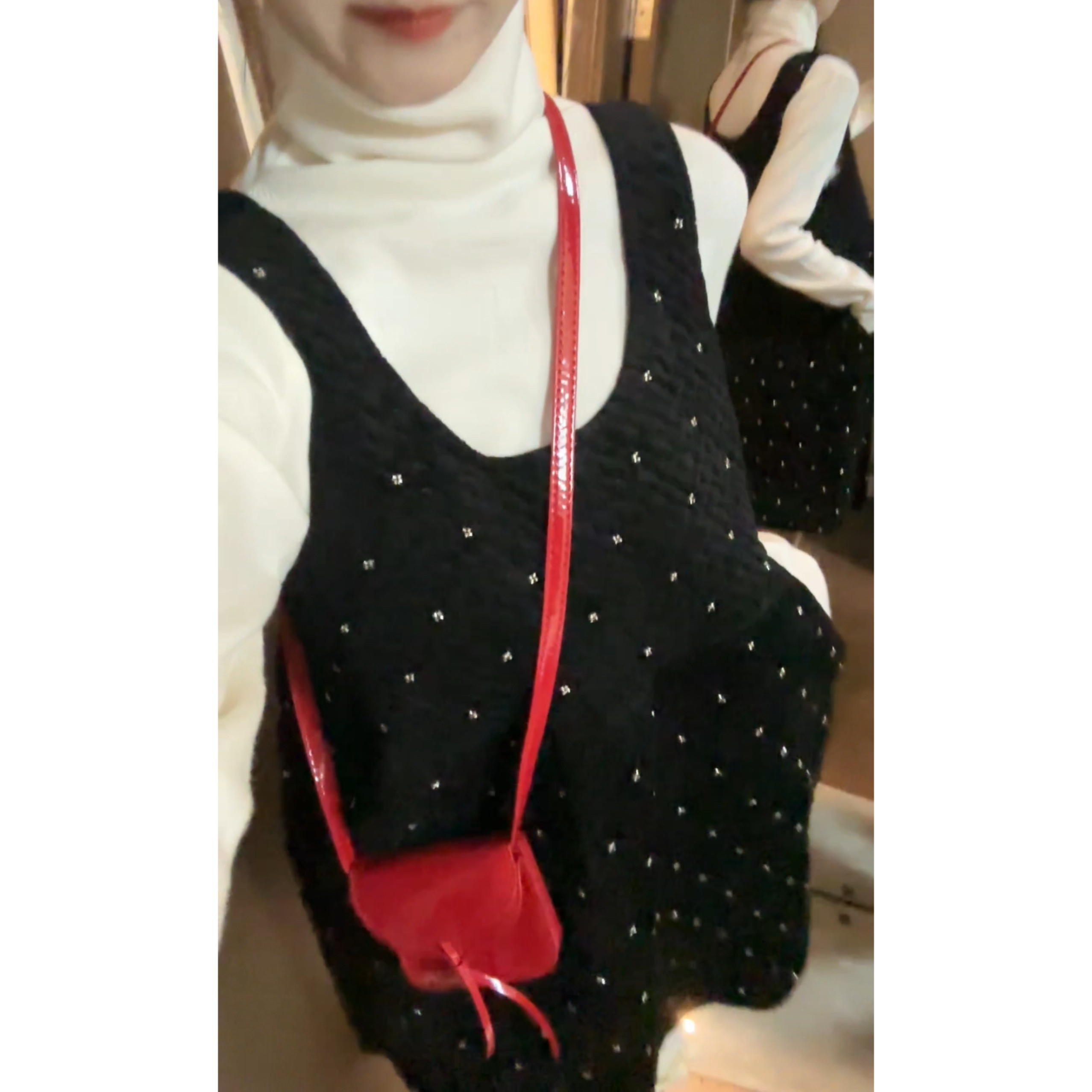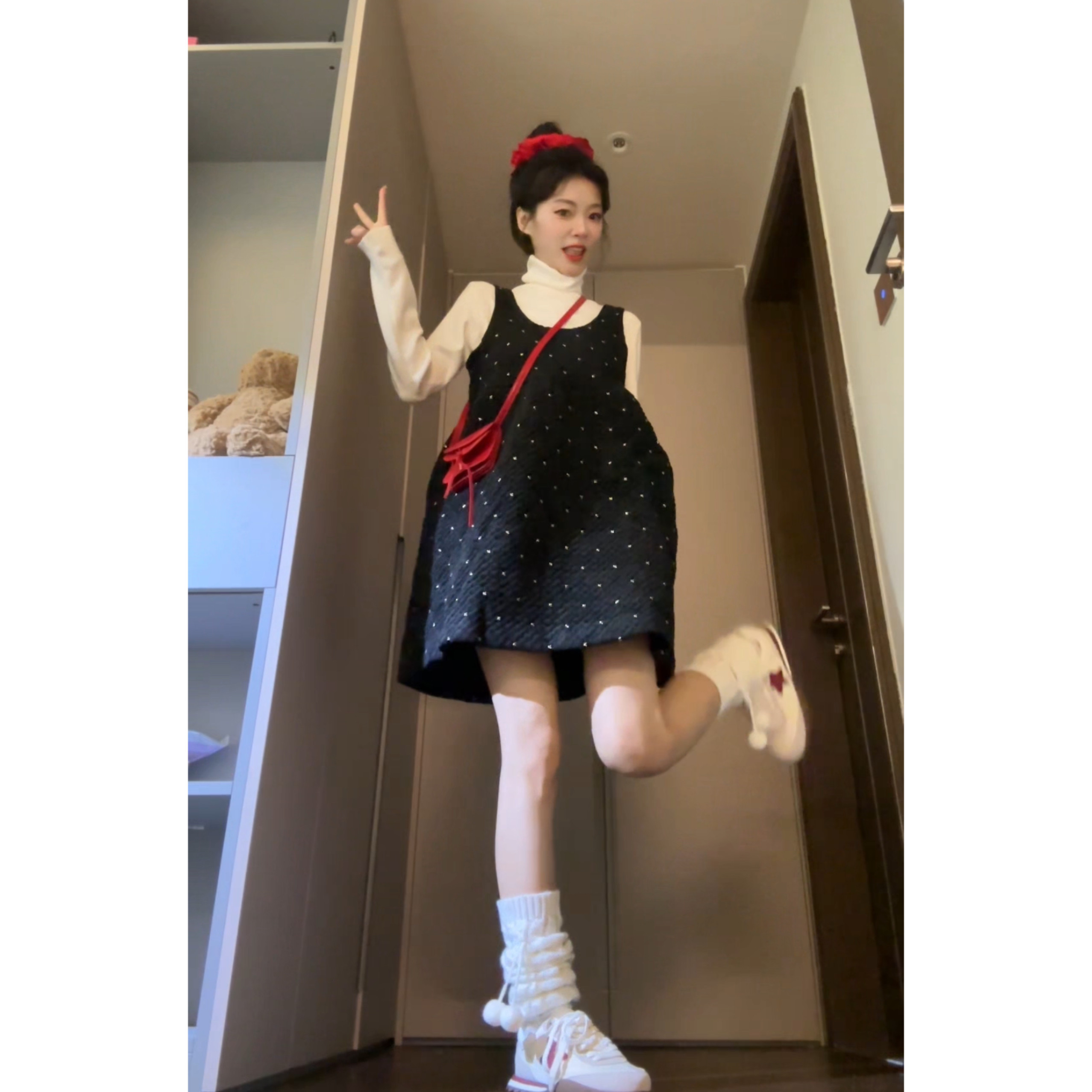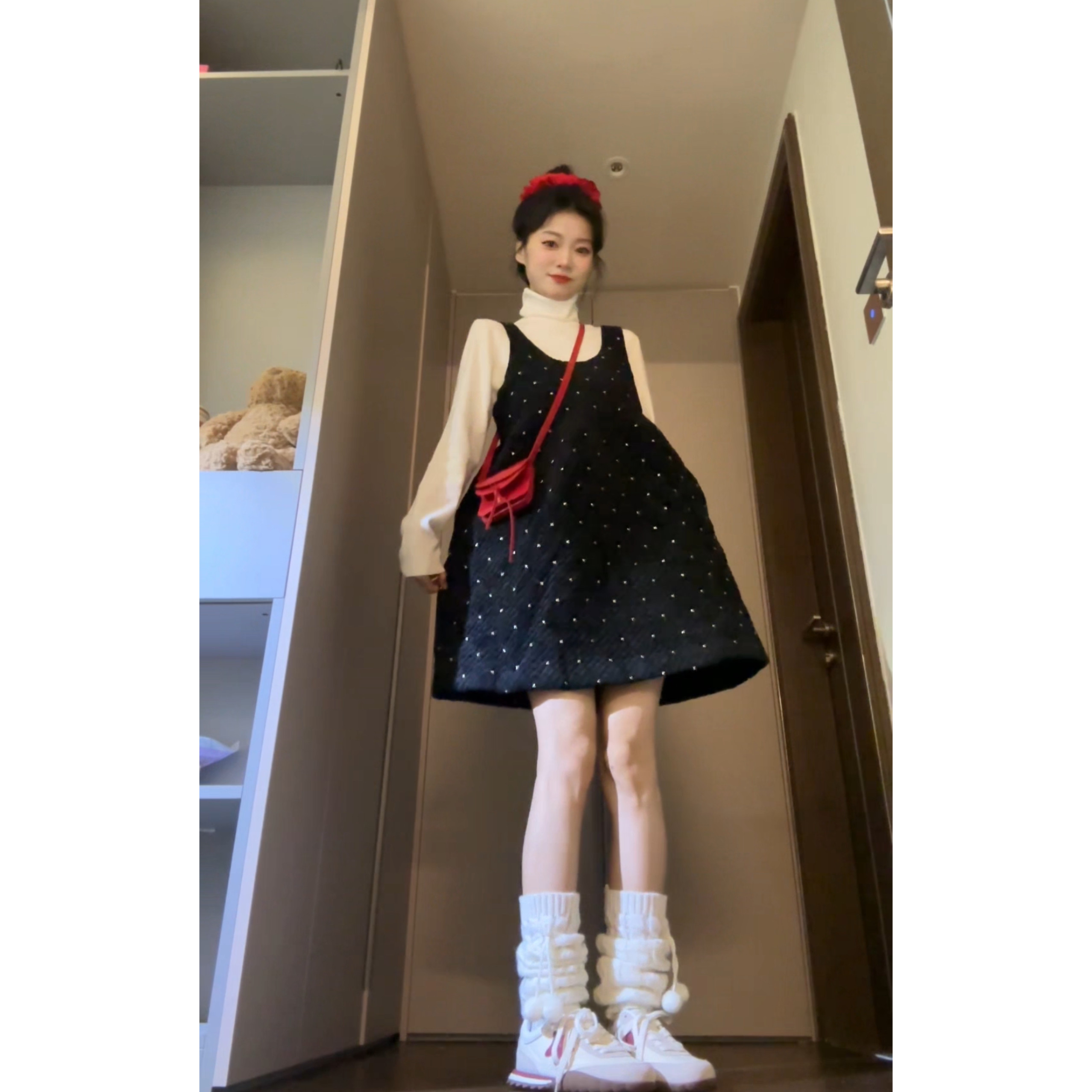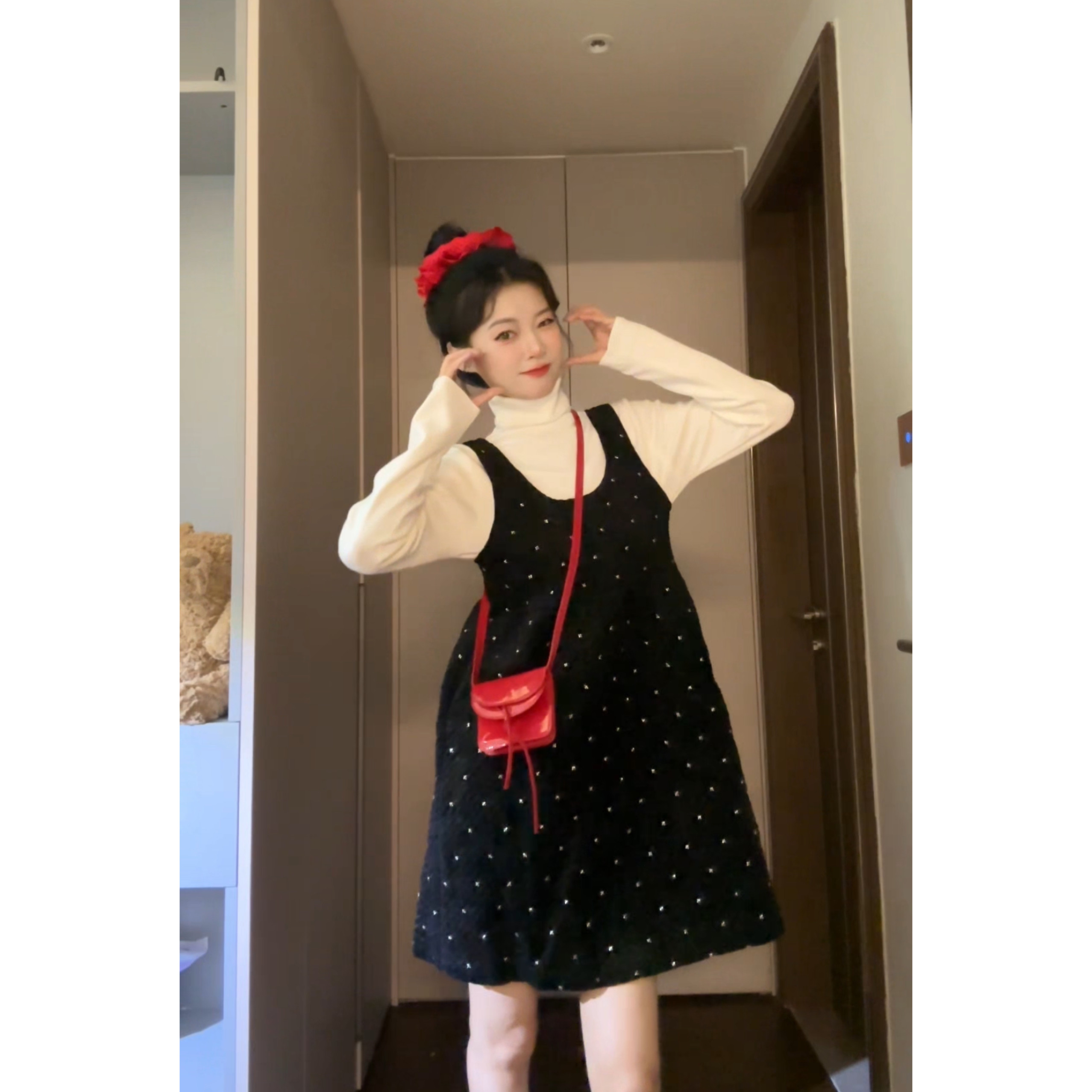 七分糖奶油慕斯显瘦丝绒连衣裙套装女背带裙内搭打底衫套装