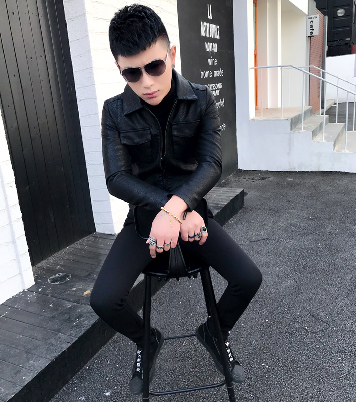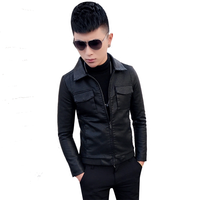 男装皮衣男士羊羔毛领修身韩版潮流仿皮夹克帅气机车青年短款外套