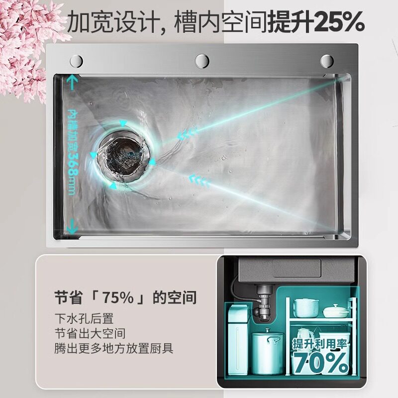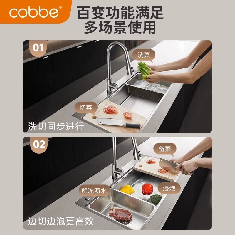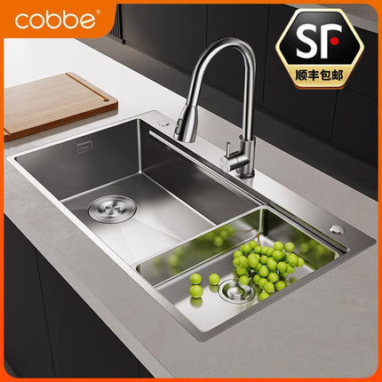 卡贝水槽大单槽304不锈钢侧排水手工洗菜盆厨房洗碗洗菜池台下盆