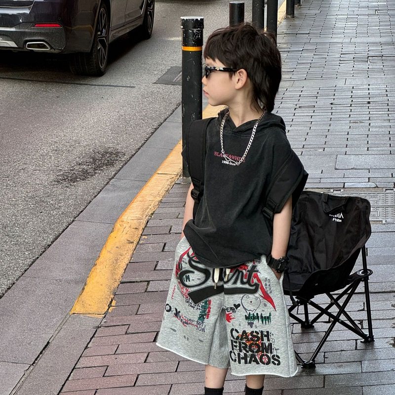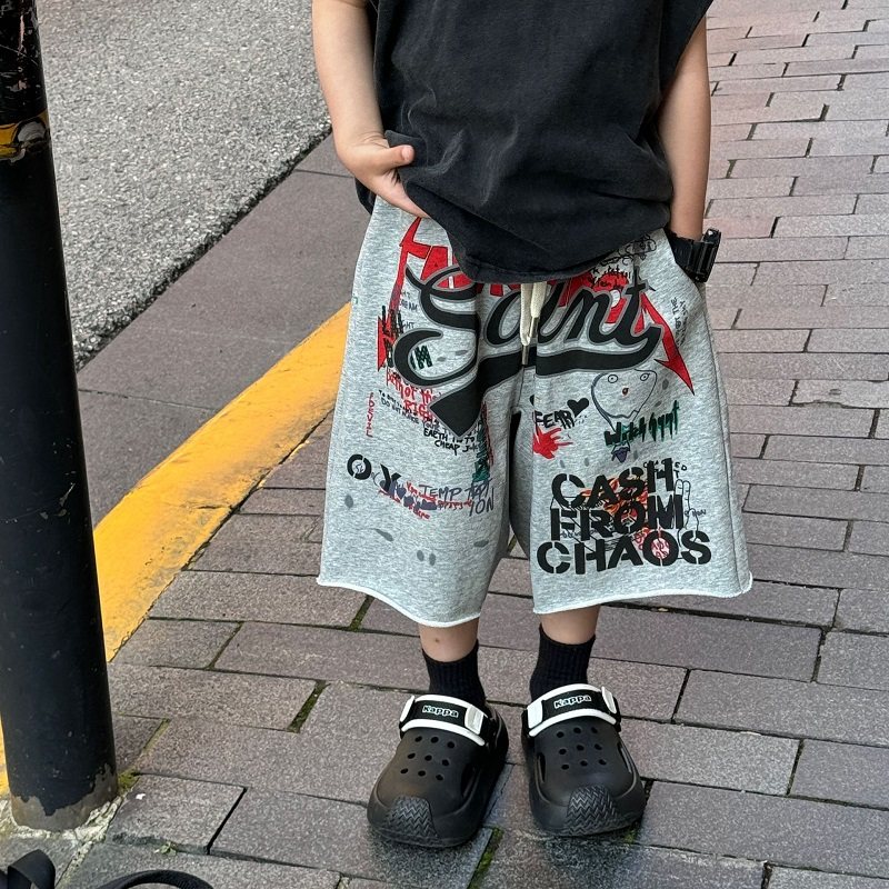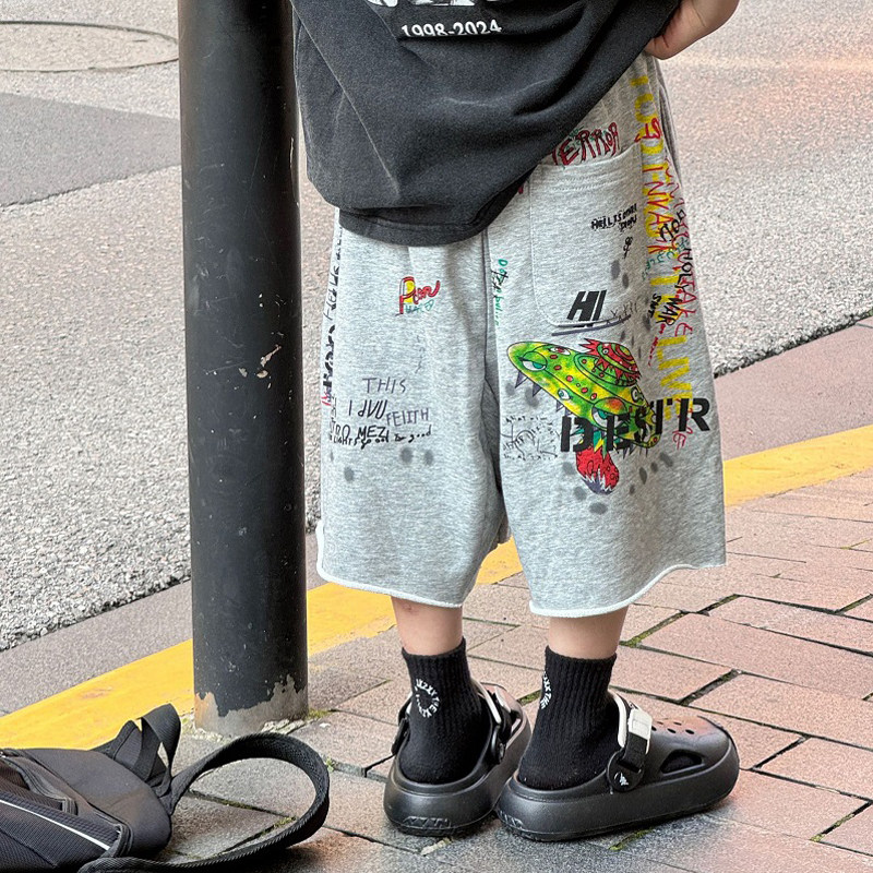 2026夏季新款儿童韩版宽松运动五分裤男童潮酷帅气涂鸦印花短裤潮