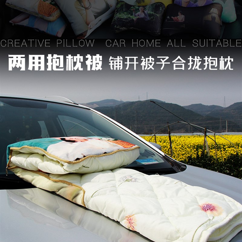 汽车内护颈枕头抱枕被多功能4四件套两用diy定制来图定做照片靠垫