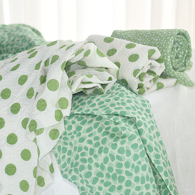 她慕清新小碎花波点纯棉布料立体褶皱泡泡棉diy夏季裙子服装面料